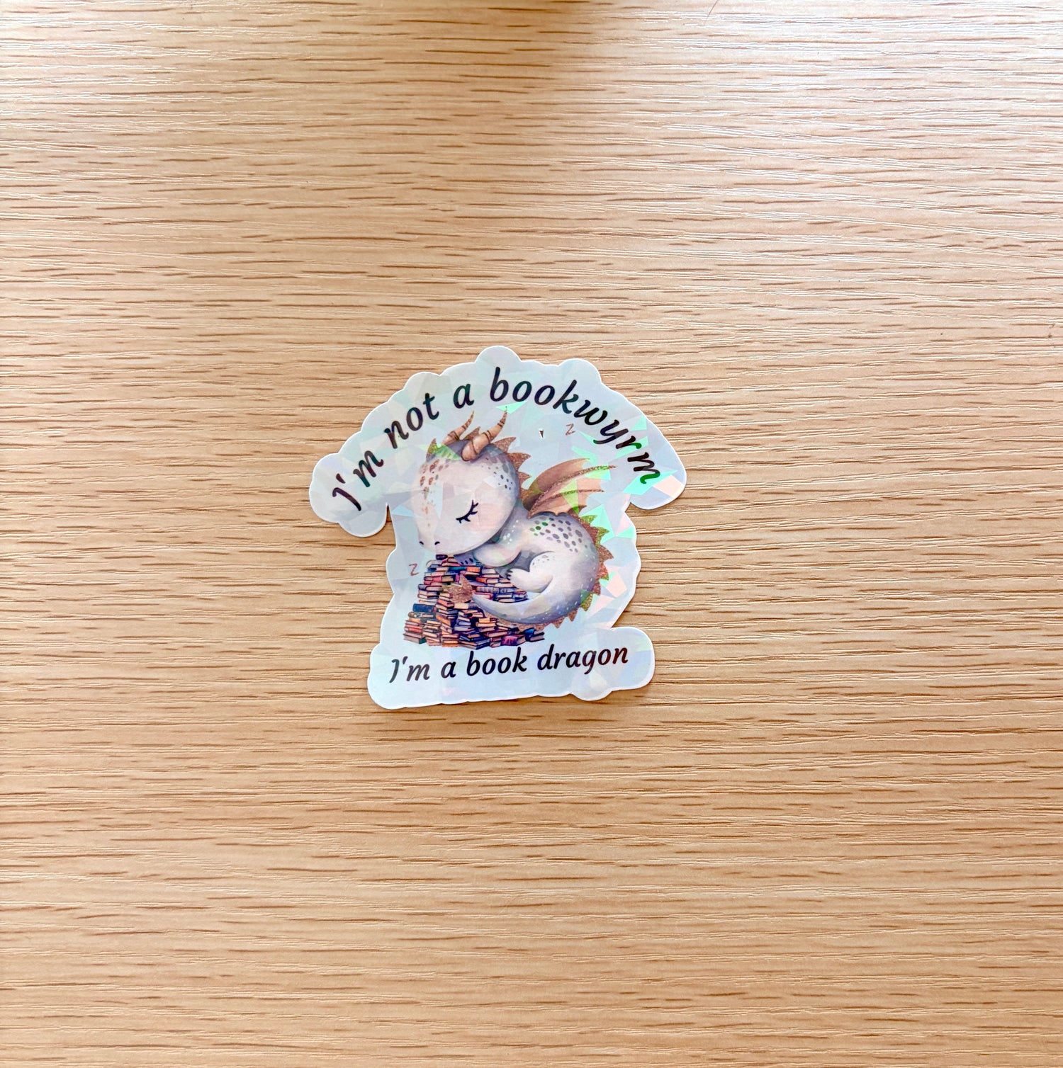 Cute Dragon Book Sticker, Dragon with Books Die Cut Sticker, Book Lover Gift Idea - I'm Not a Bookwyrm Vinyl Decal -Reader Gift for Kindle, Laptop, and Water Bottles
