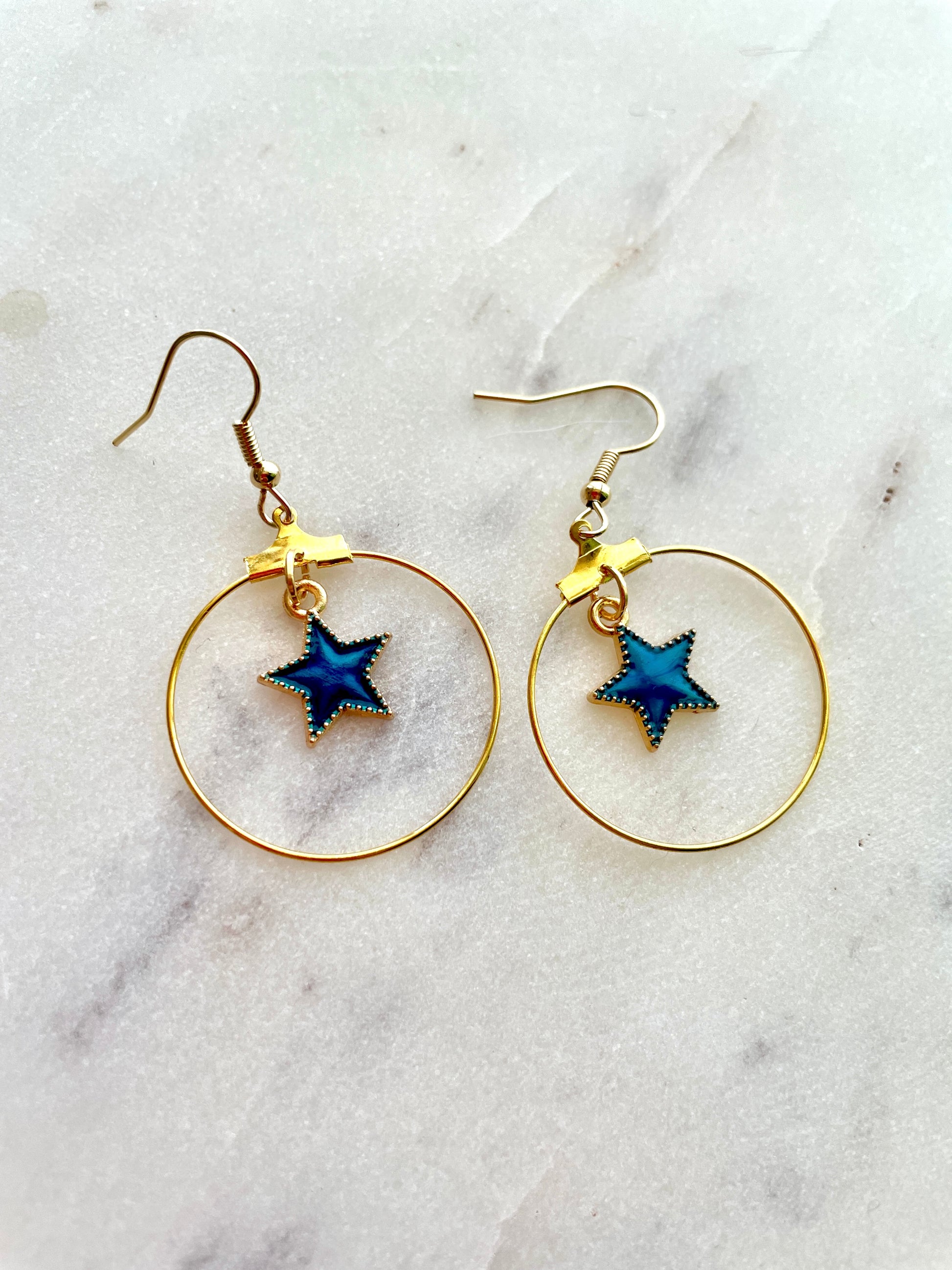Here are our little brass hoop earrings. These hoop earrings are perfect for the stargazer.
