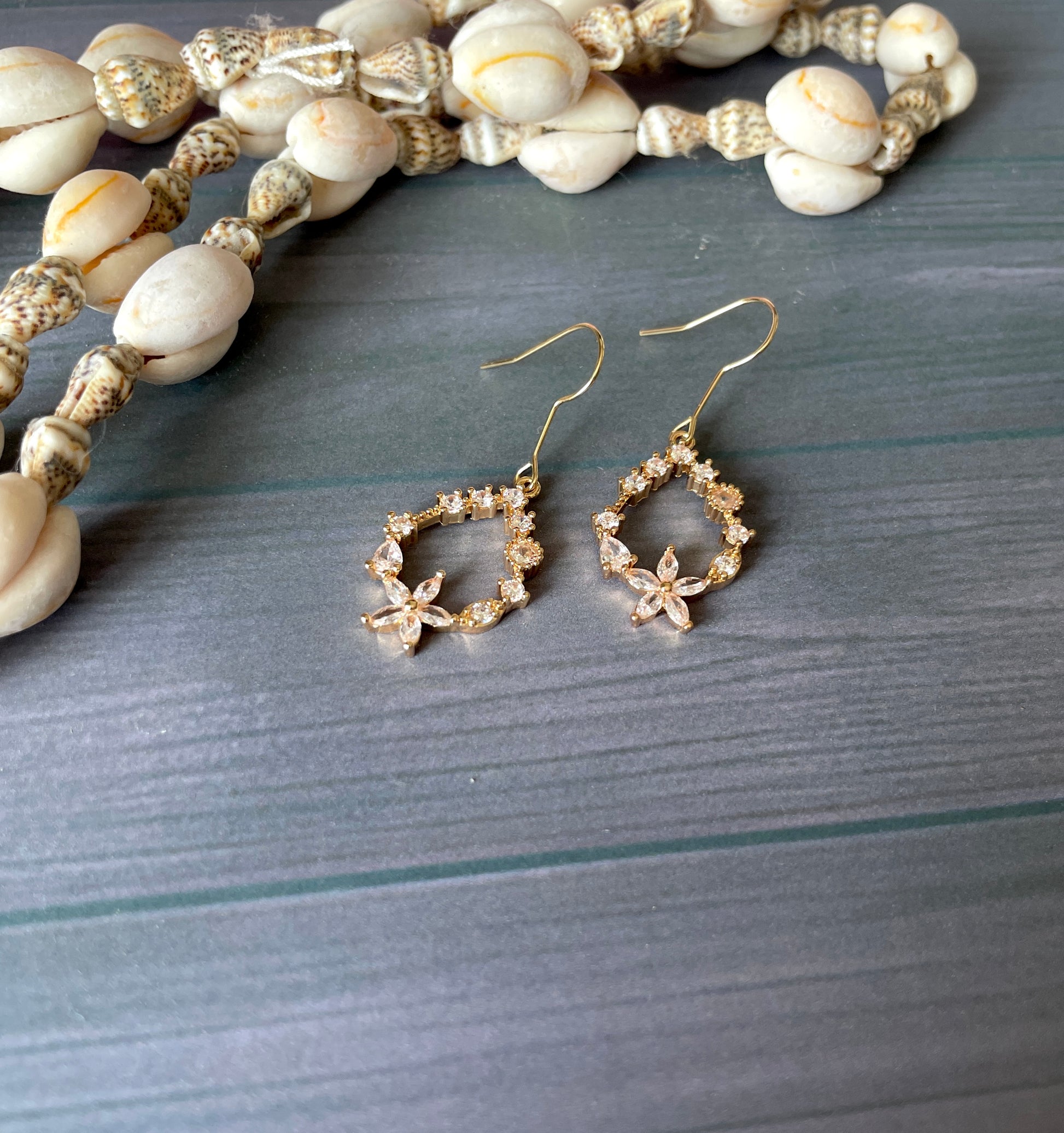 Add a touch of celestial charm to your jewelry collection with these exquisite tear-drop earrings. Crafted from brass, these earrings feature a sleek, elegant teardrop design that add charm to any outfit. Each earring is adorned with sparkling cubic zirconia stones, adding brilliance and shine.