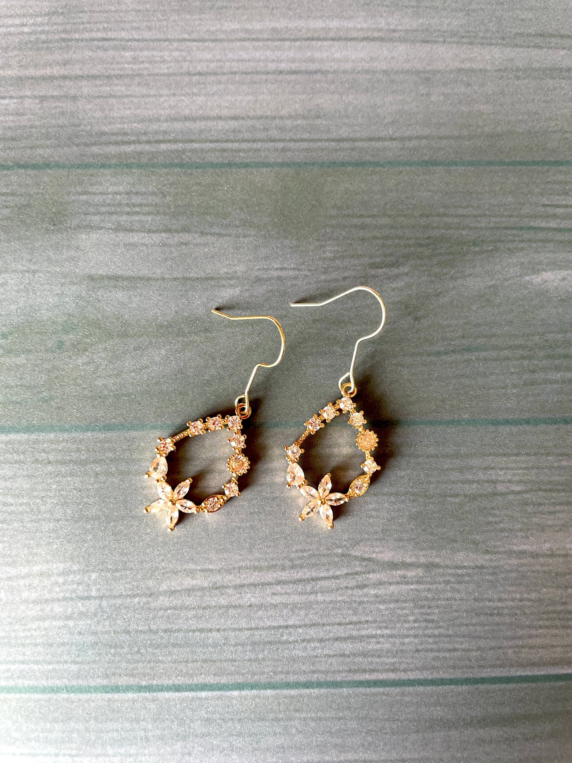 Brass Tear-Drop Dangle Earrings with Cubic Zirconia