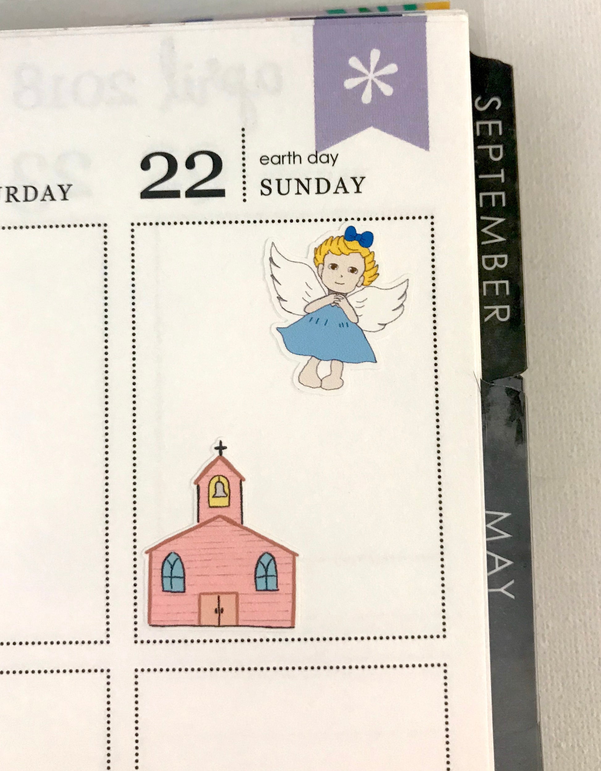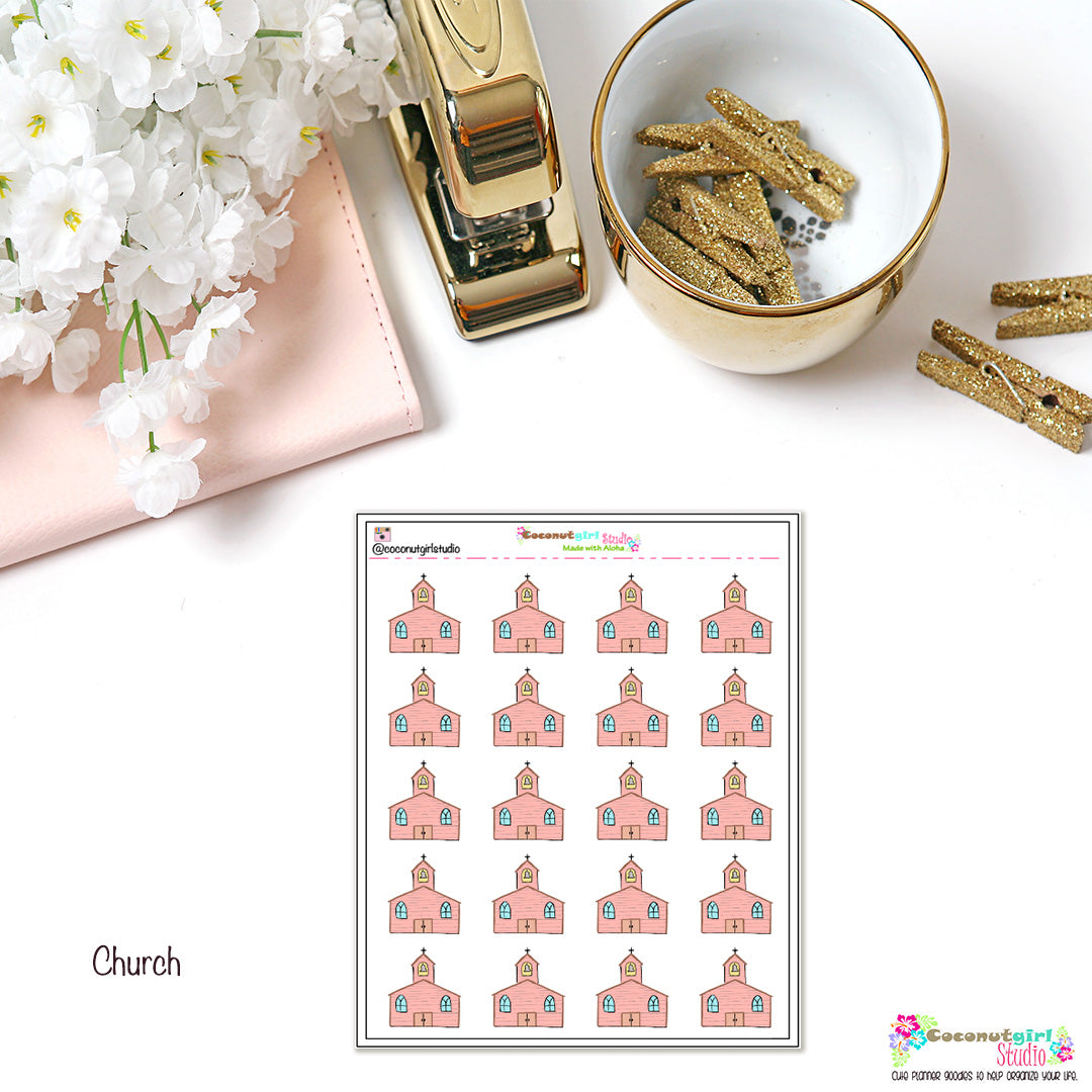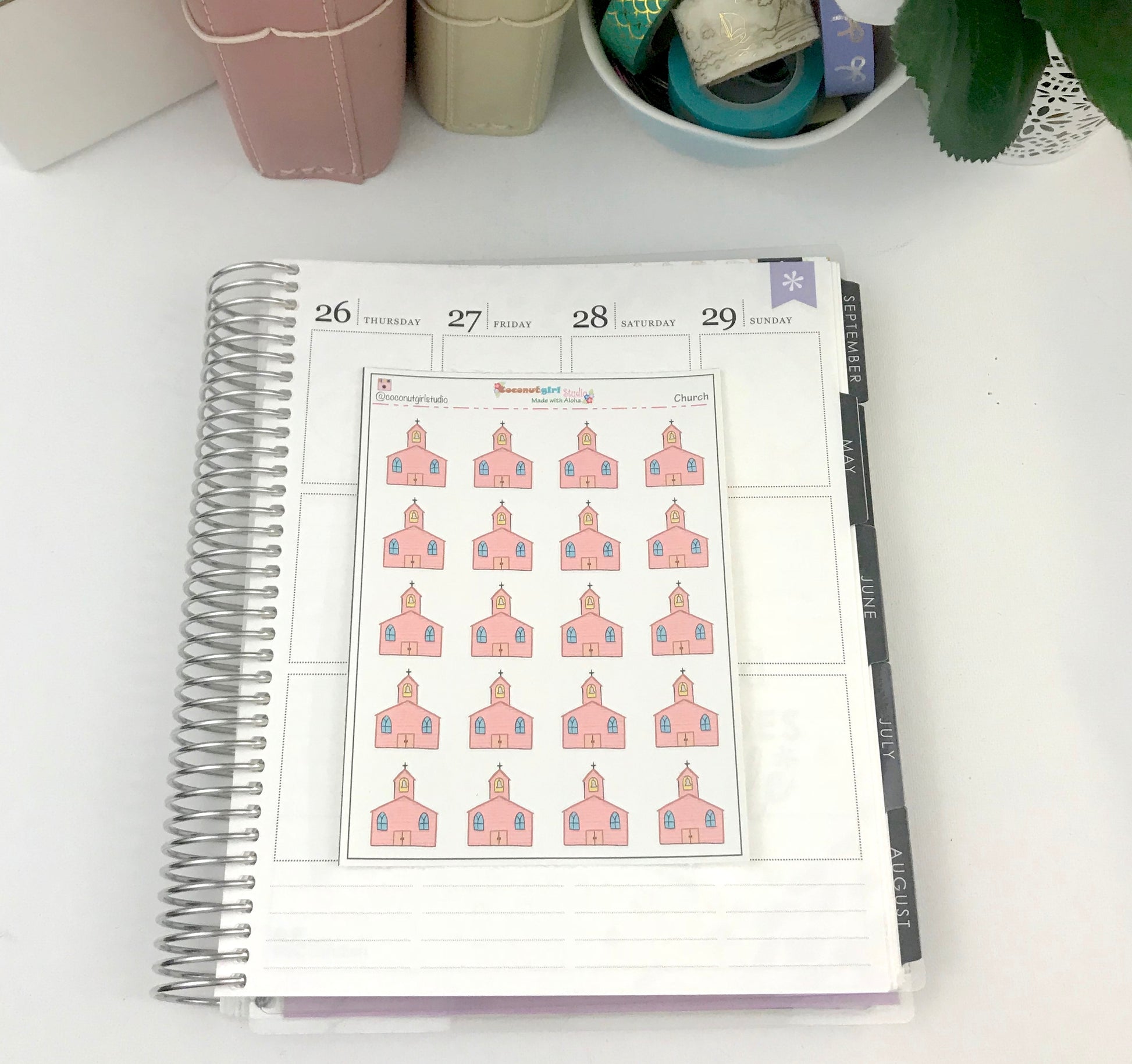 One sheet of Church stickers, perfect for marking your calendars for when you're going to church, or bible study, anything dealing with the church!