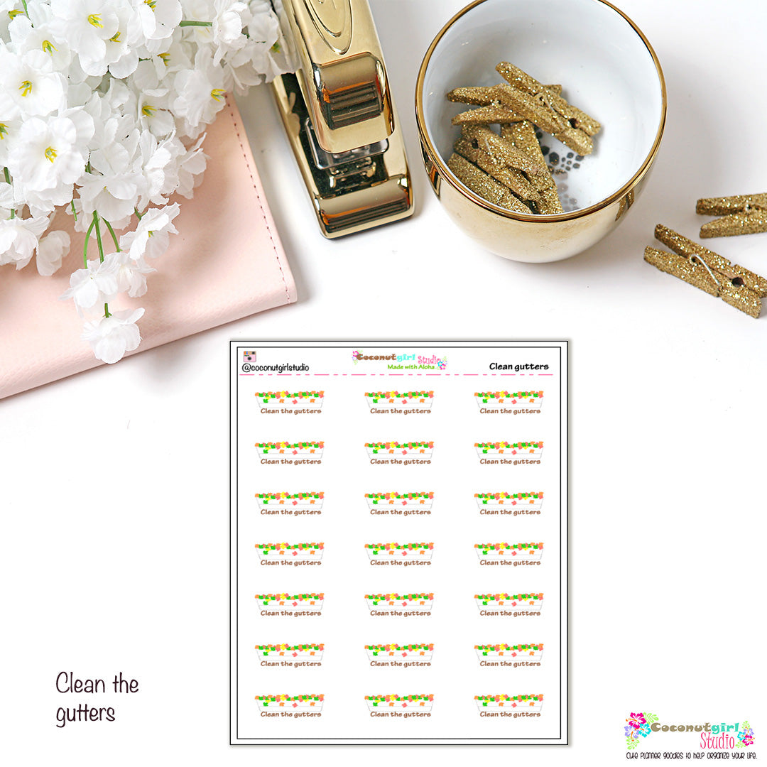 One sheet of It's that time of year when the leaves are falling! As gorgeous as it is, we still need to the gutters! These clean the gutter stickers are a great reminder for you or put them in your planner to let you know that it's time to add it to your honey-do list, even chores for the kids!