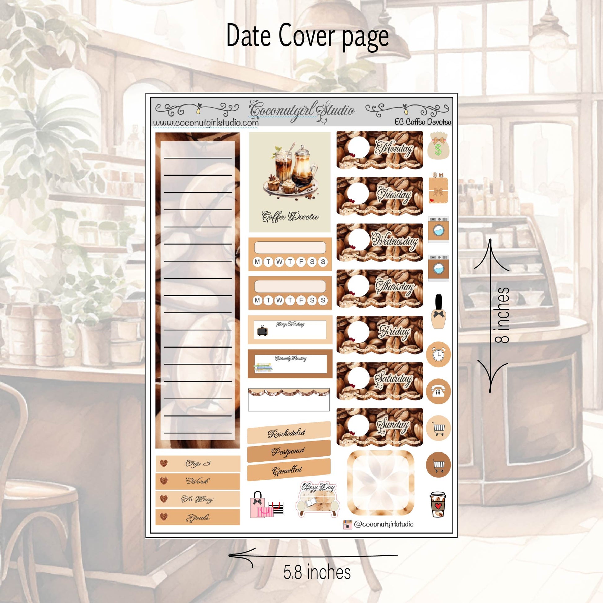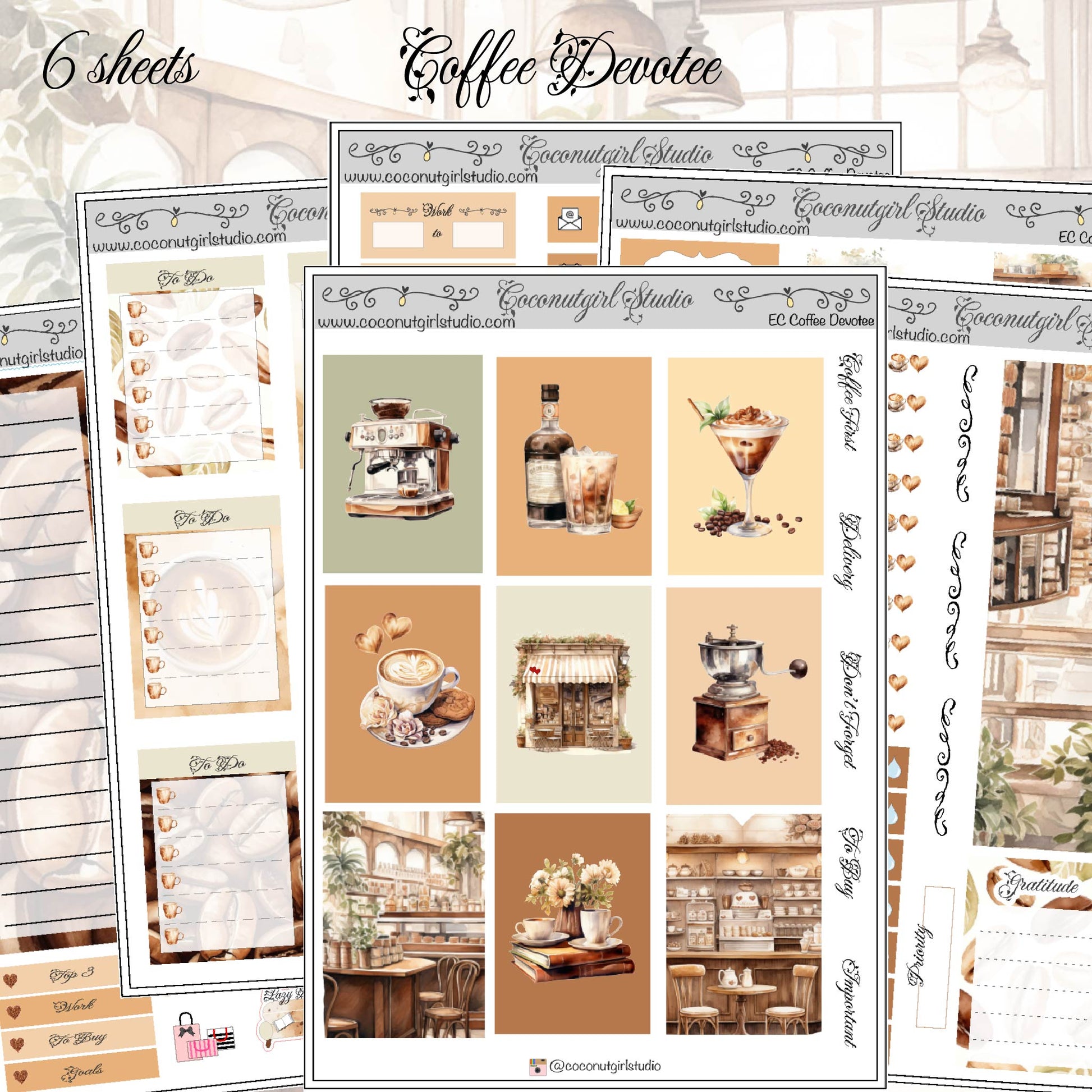 This is our Coffee Devotee weekly kit printed on non-removable sticker paper