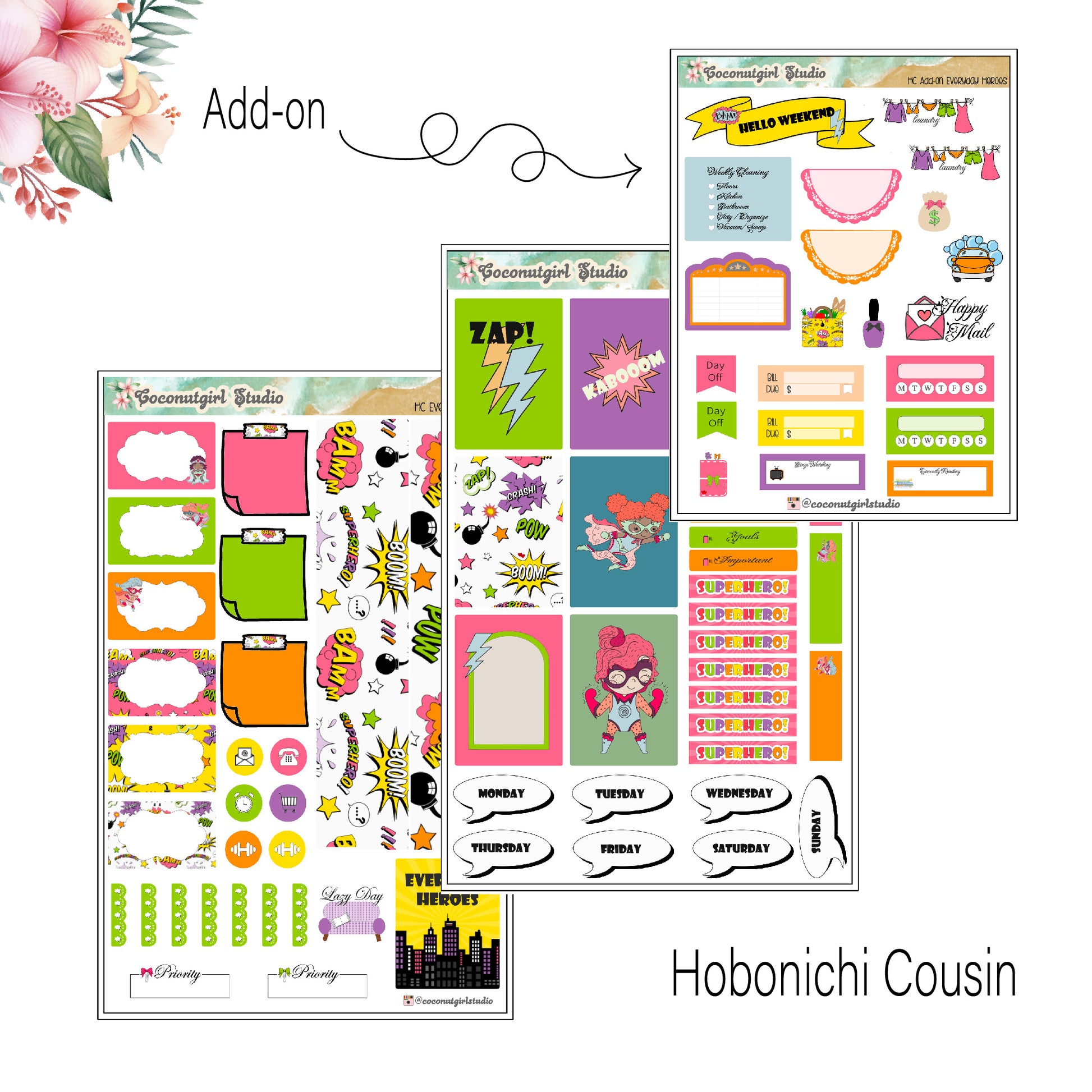 Unleash your inner hero with our weekly comic kit! Stay organized and have fun with planner stickers featuring cute and playful superheroes. Perfect for those who refuse to take themselves too seriously. (BAM! POW! KAPOW! - oops, sorry, got carried away there.