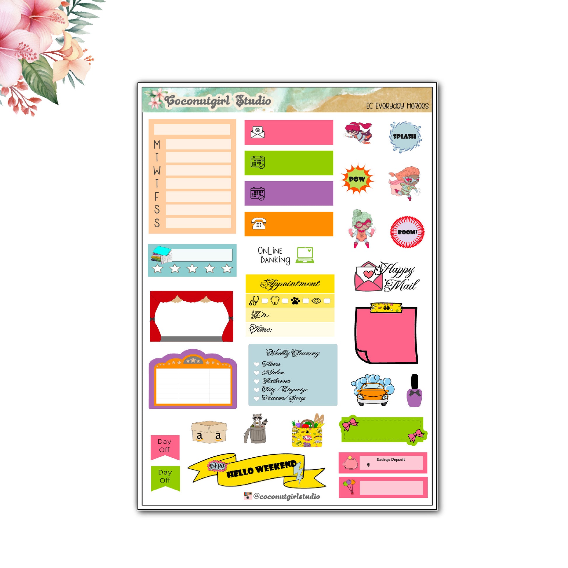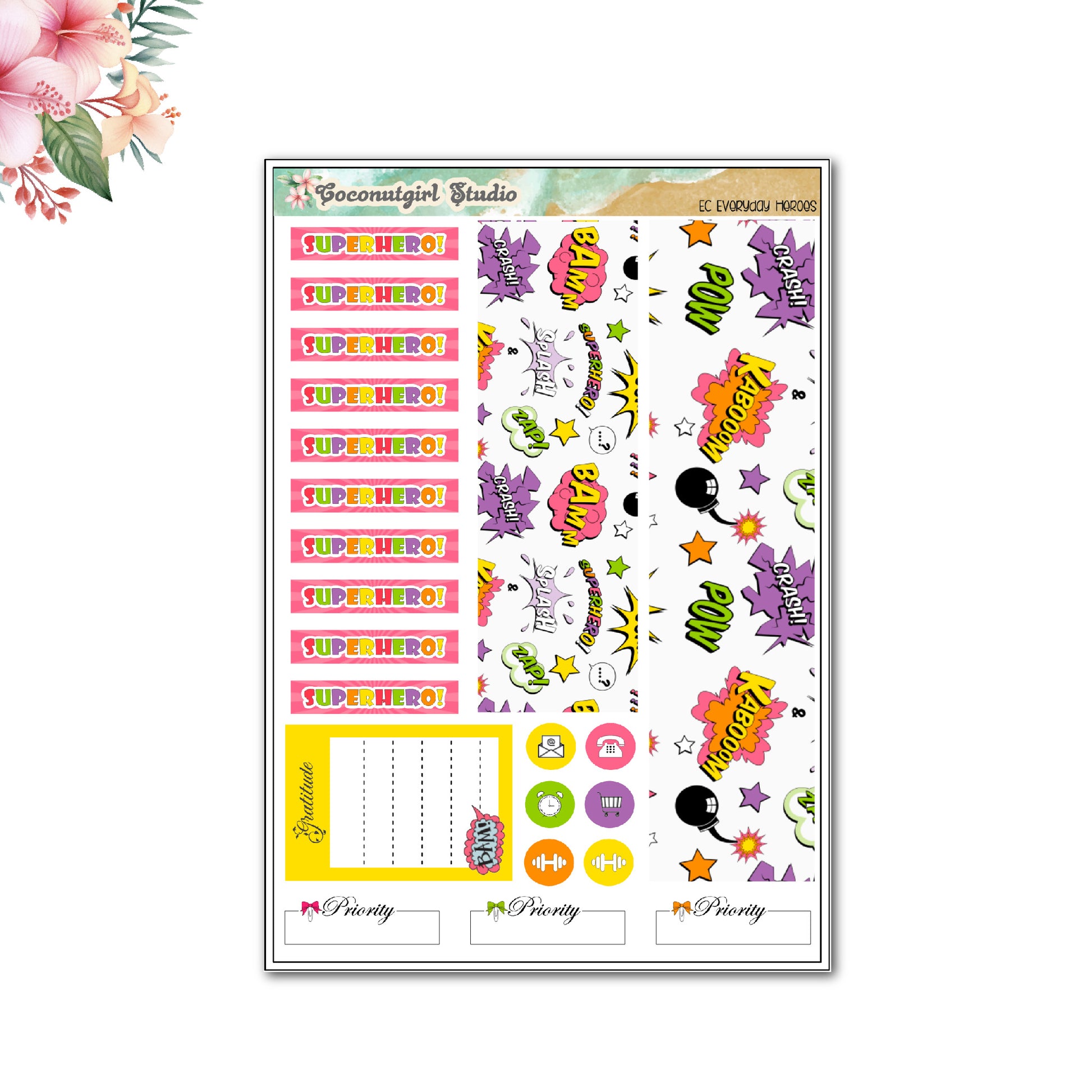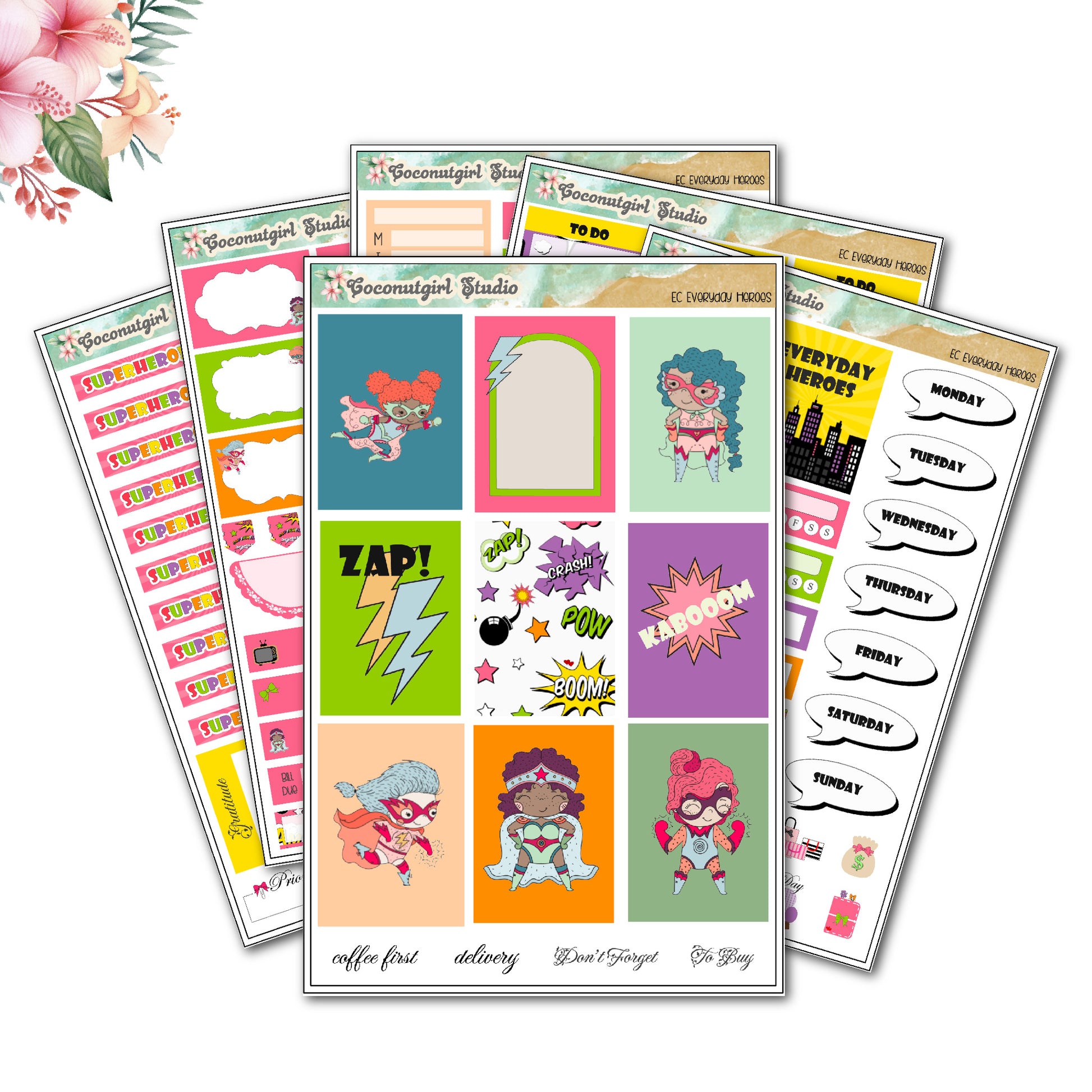 Unleash your inner hero with our weekly comic kit! Stay organized and have fun with planner stickers featuring cute and playful superheroes. Perfect for those who refuse to take themselves too seriously. (BAM! POW! KAPOW! - oops, sorry, got carried away there.