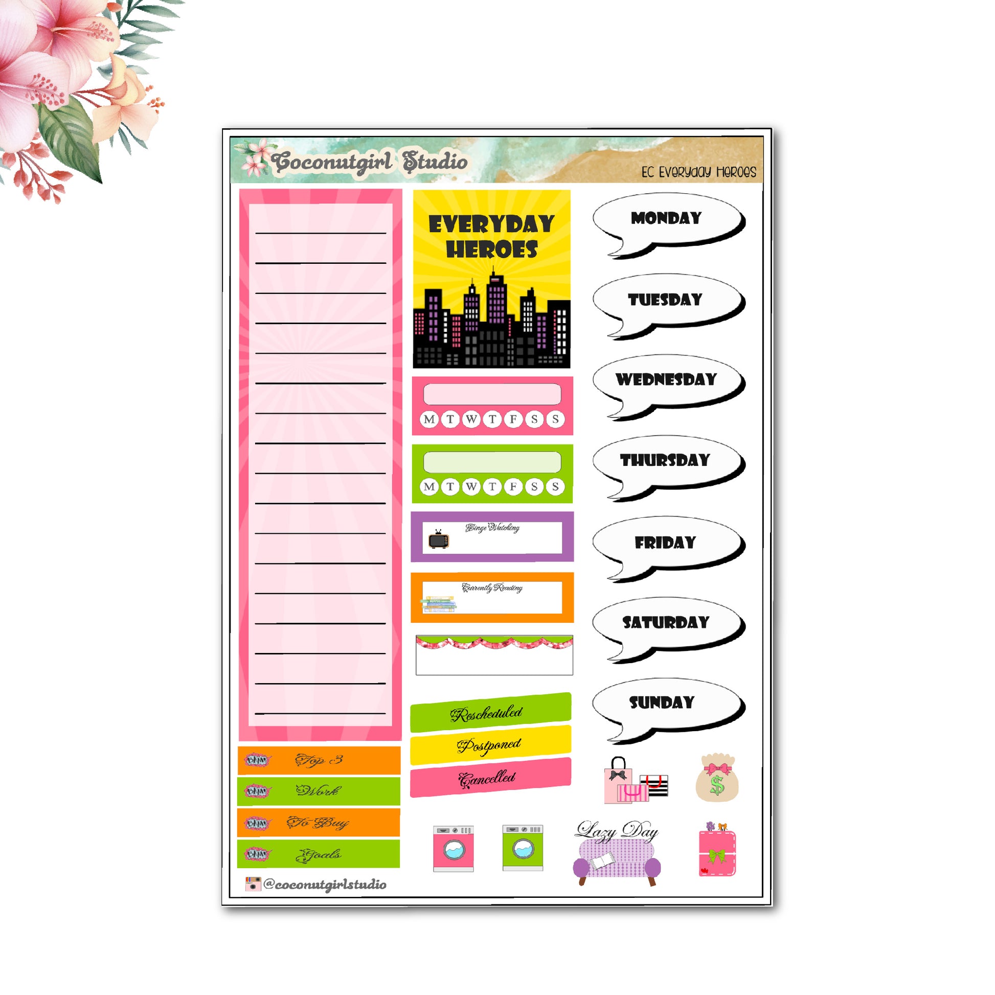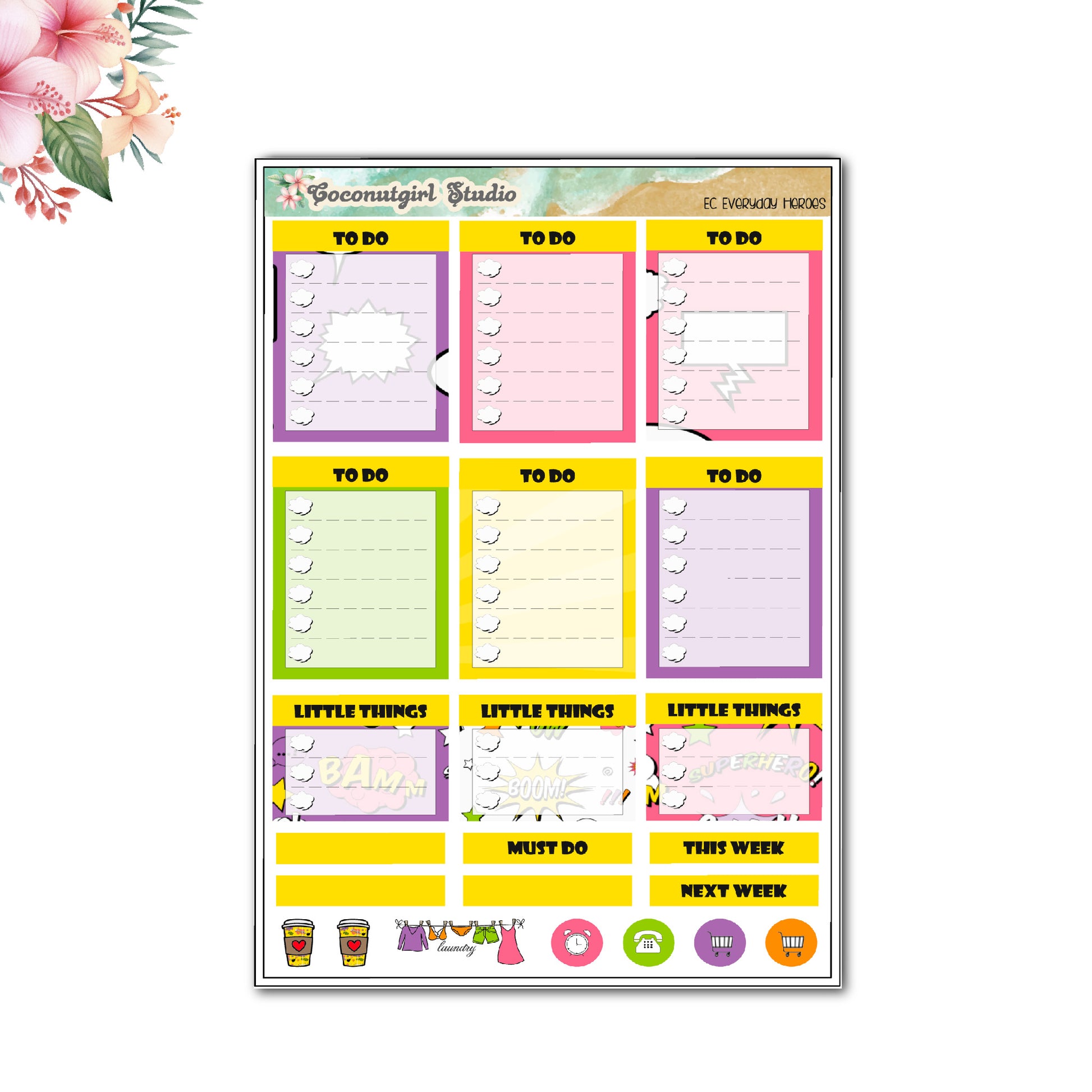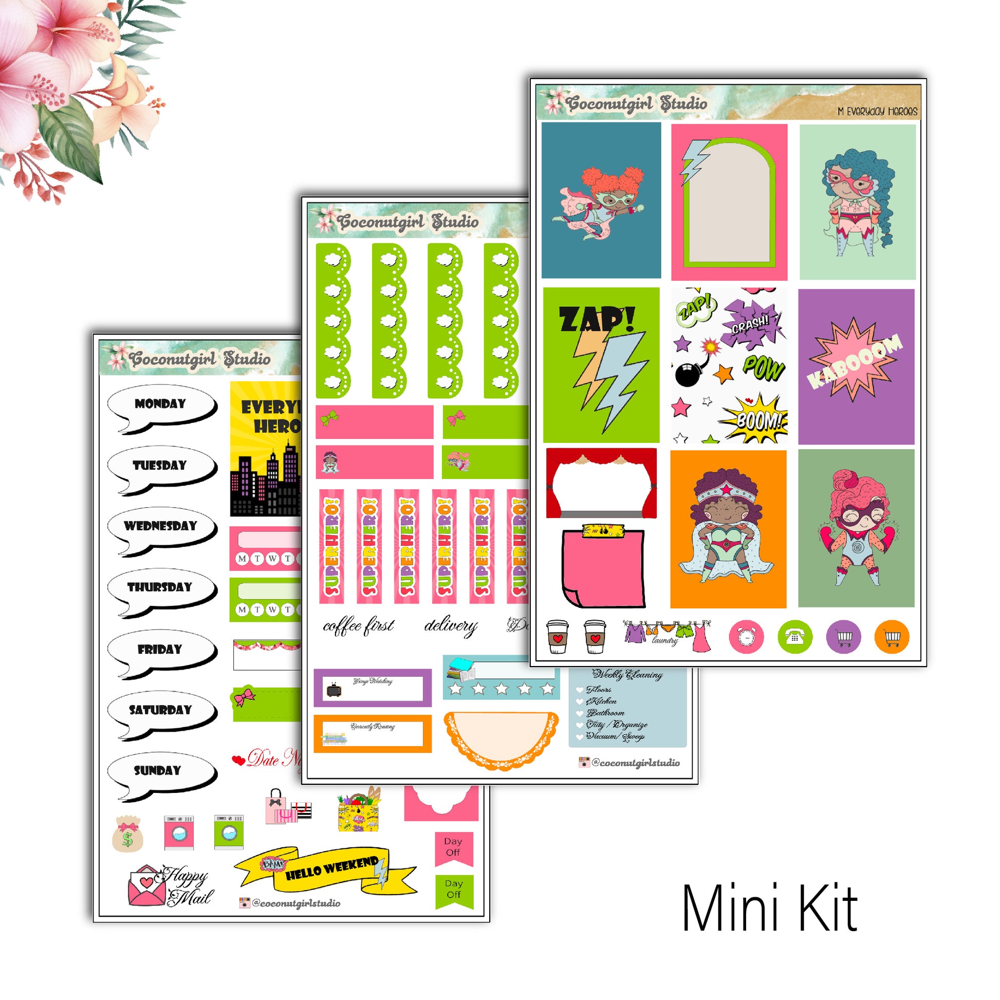 Unleash your inner hero with our weekly comic kit! Stay organized and have fun with planner stickers featuring cute and playful superheroes. Perfect for those who refuse to take themselves too seriously. (BAM! POW! KAPOW! - oops, sorry, got carried away there.