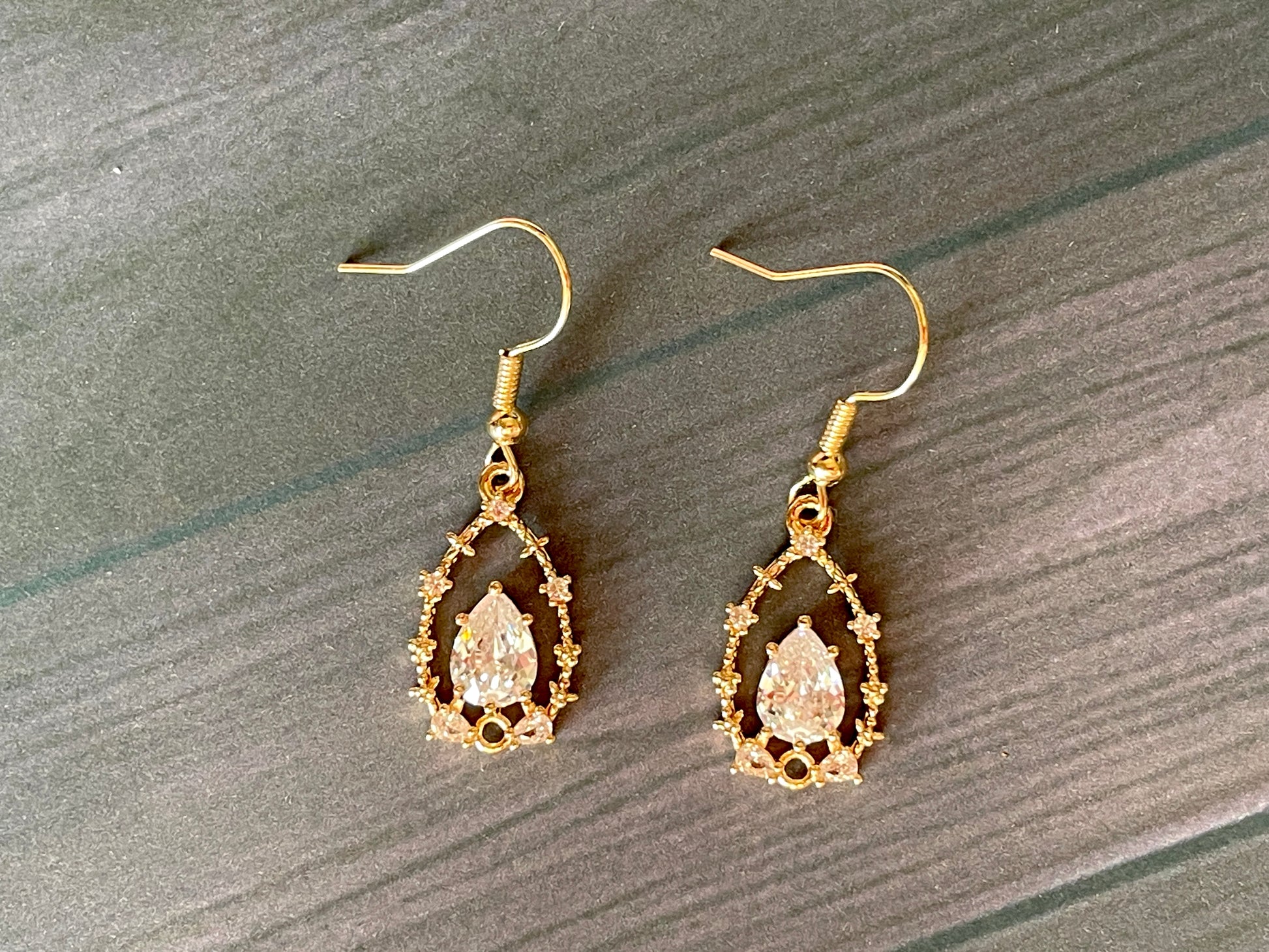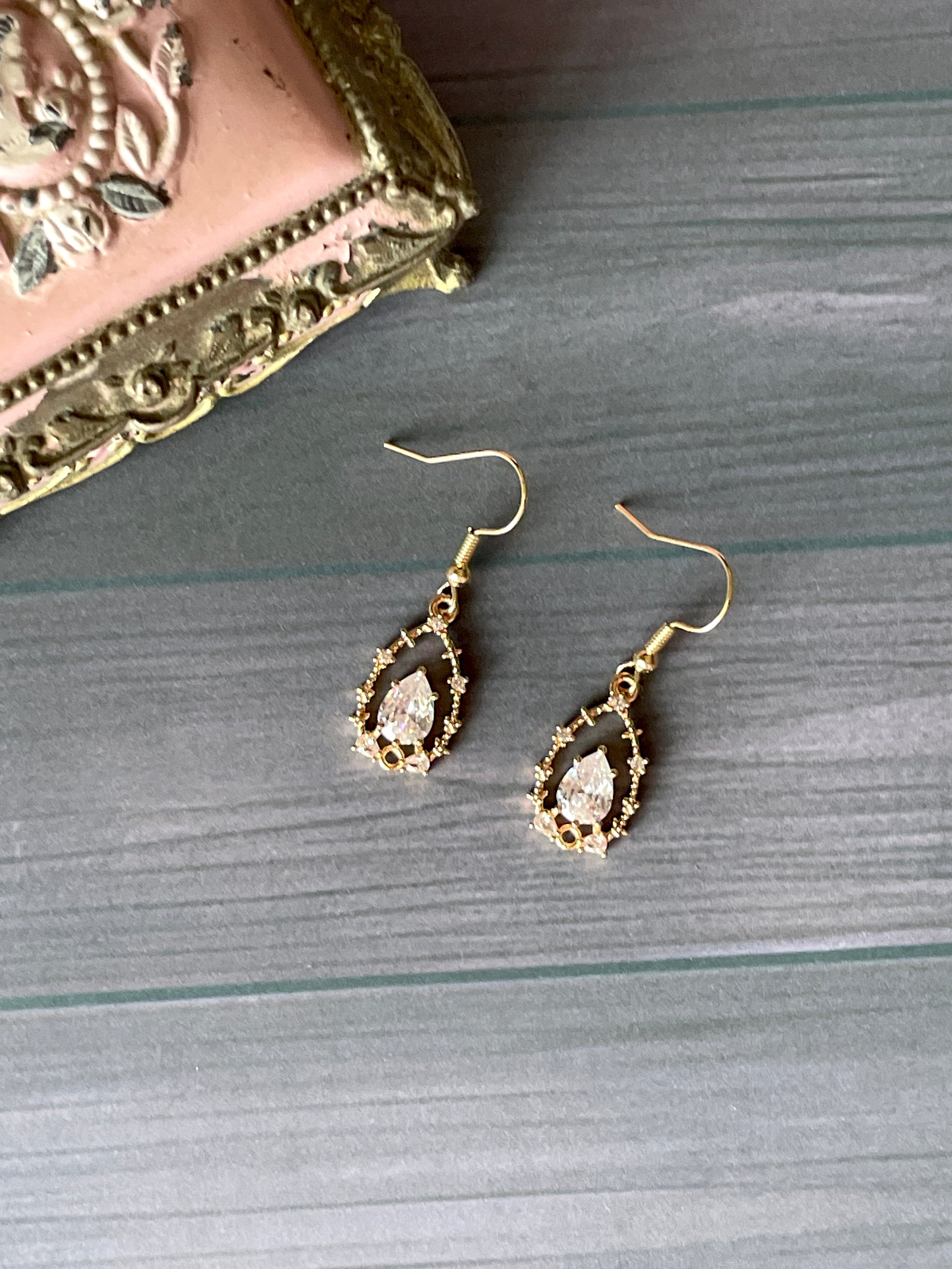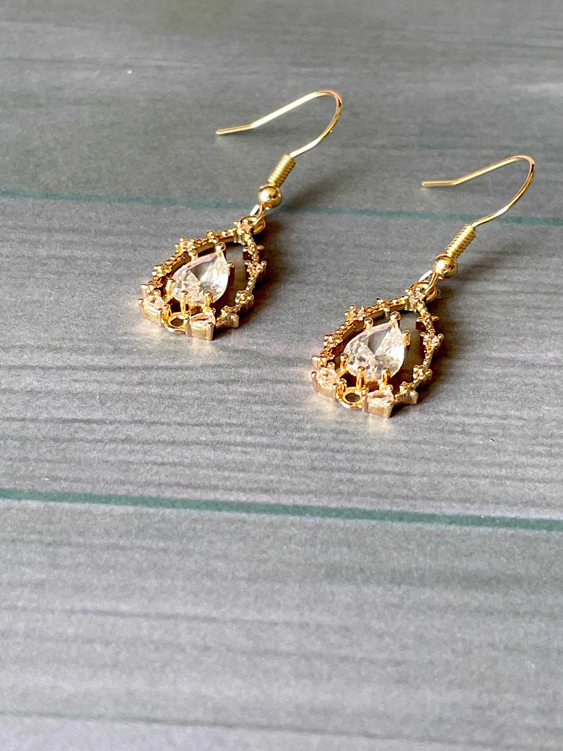 Brass Tear Drop Earrings with Cubic Zirconia
