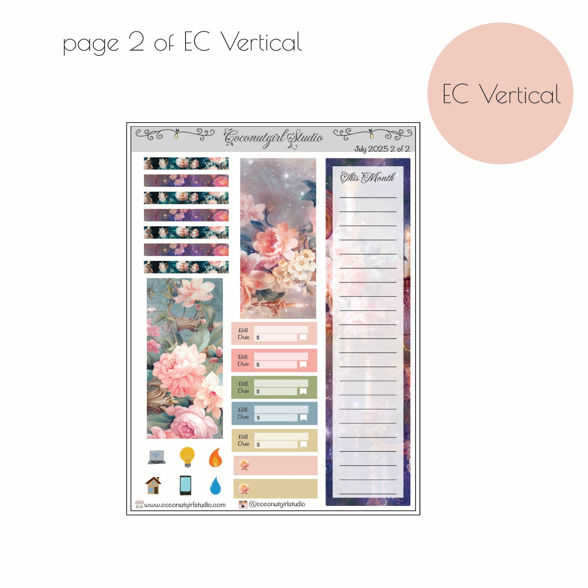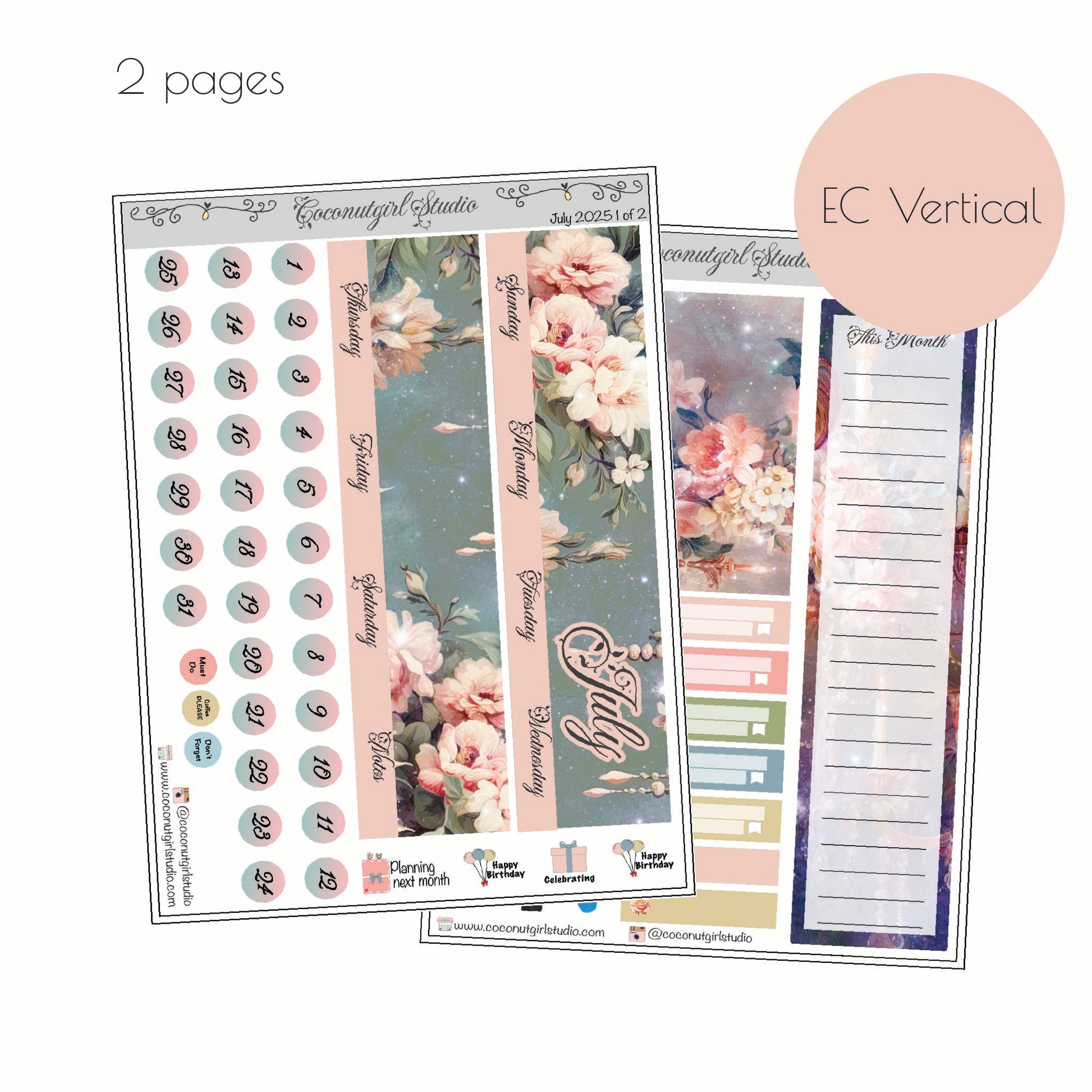Embrace the warmth of midsummer with our July Monthly Overview Kit, featuring soft, elegant florals. Perfect for adding a touch of grace to your planner, this kit is designed to help you stay organized while celebrating the beauty of July with delicate blooms and understated accents that blend effortlessly to bring charm and sophistication to your monthly layout—ideal for any planning style, whether minimalist or decorative.
