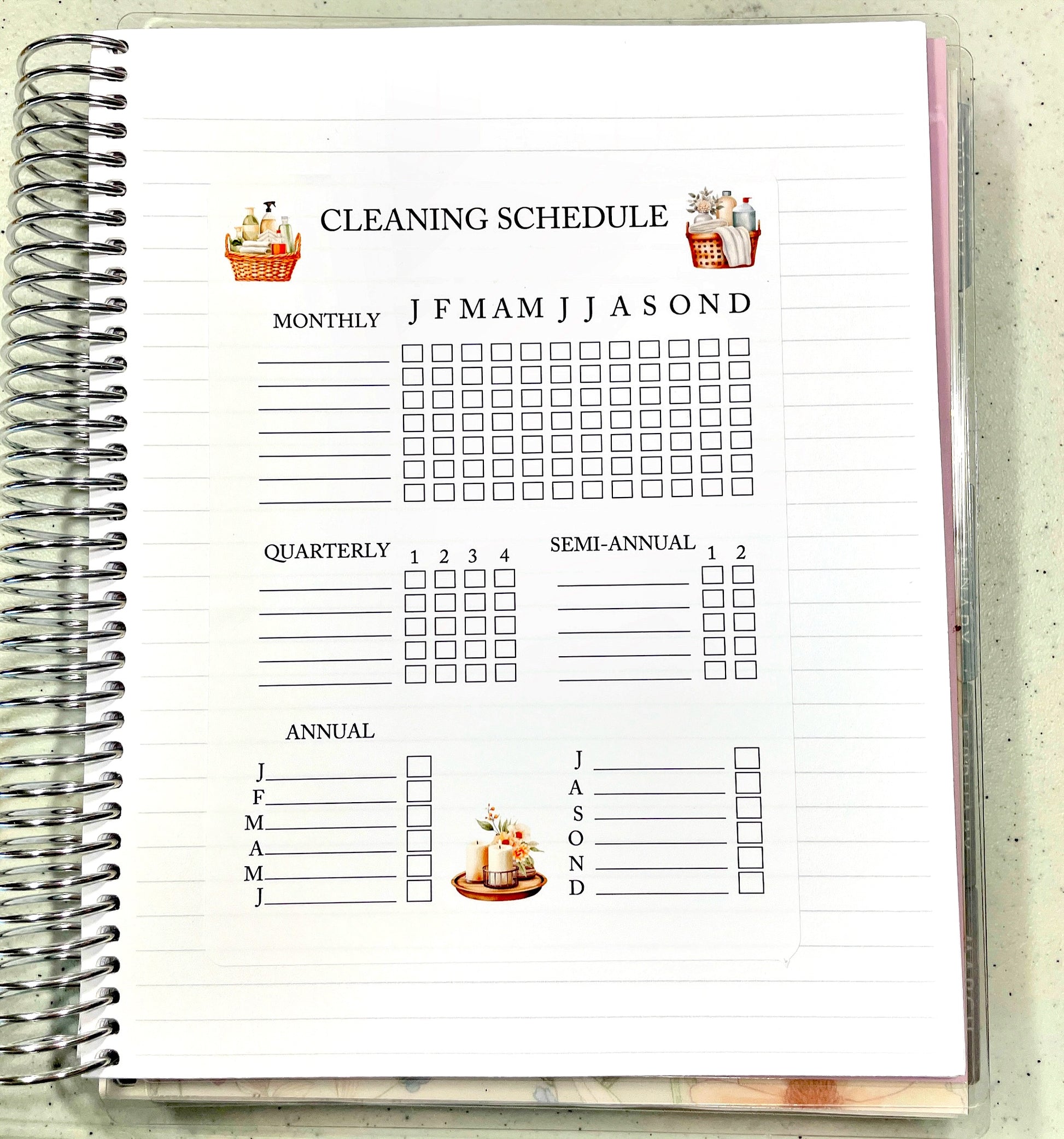Large Annual Cleaning Schedule planner stickers.