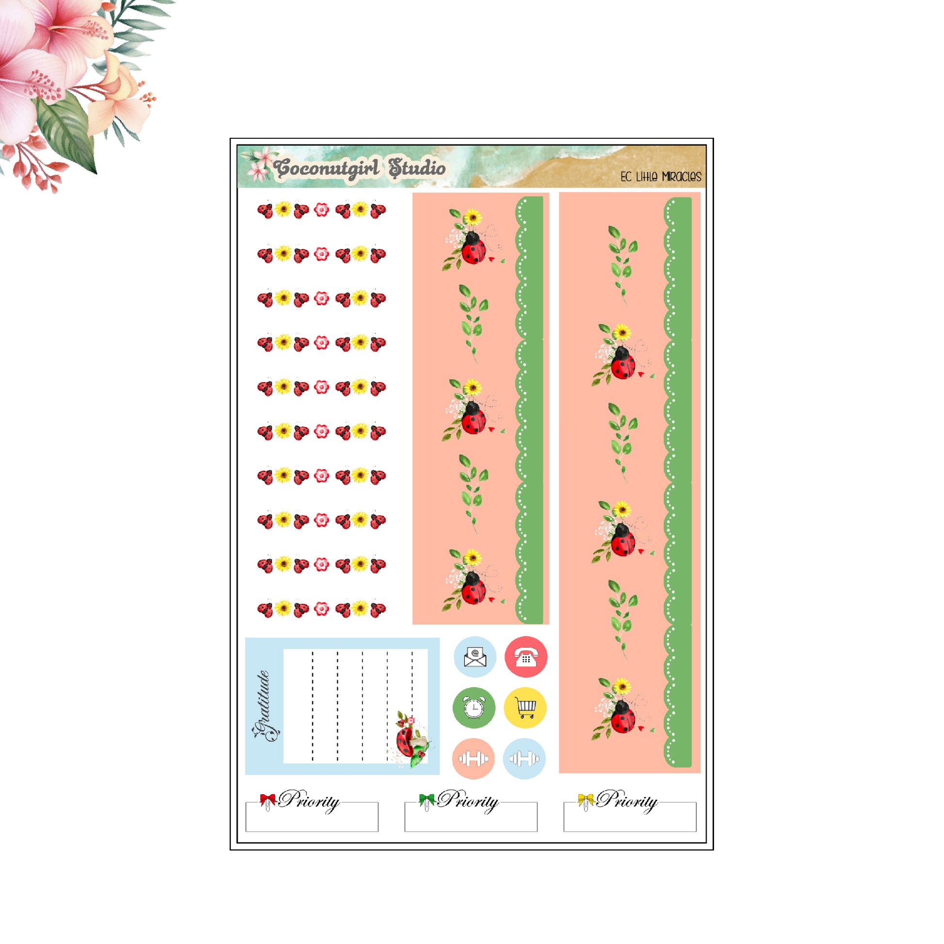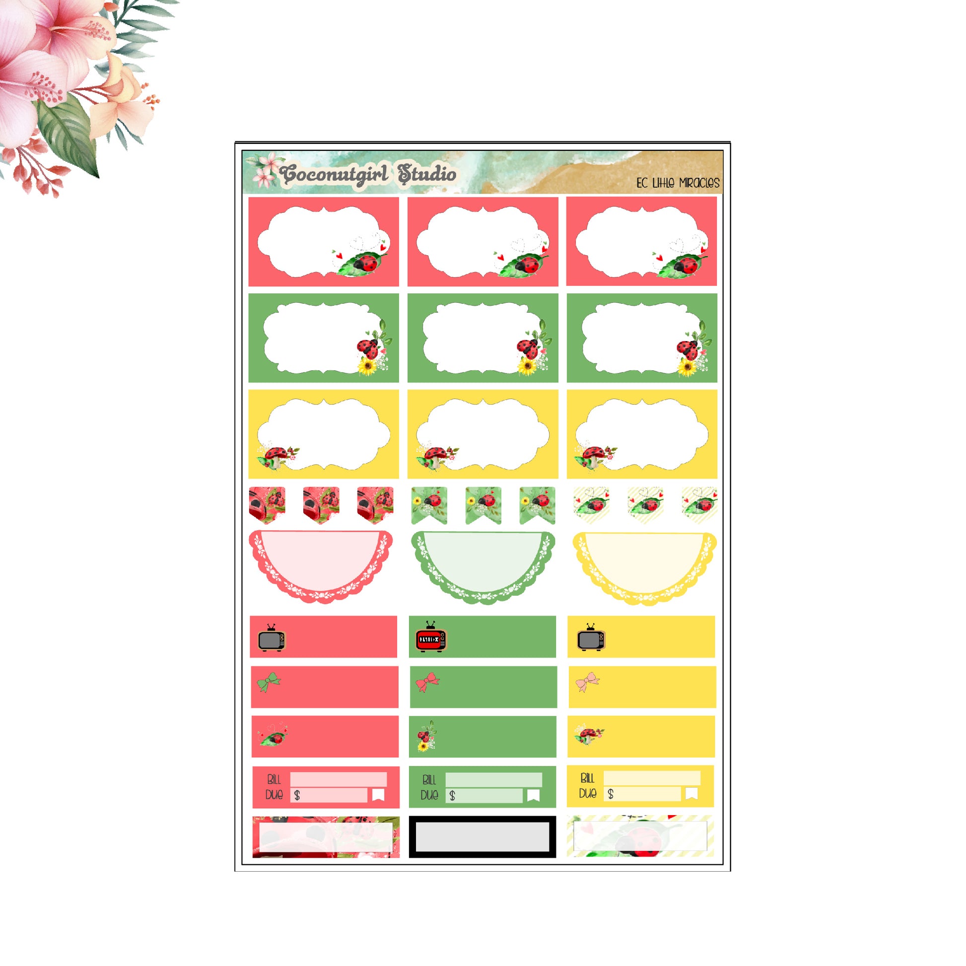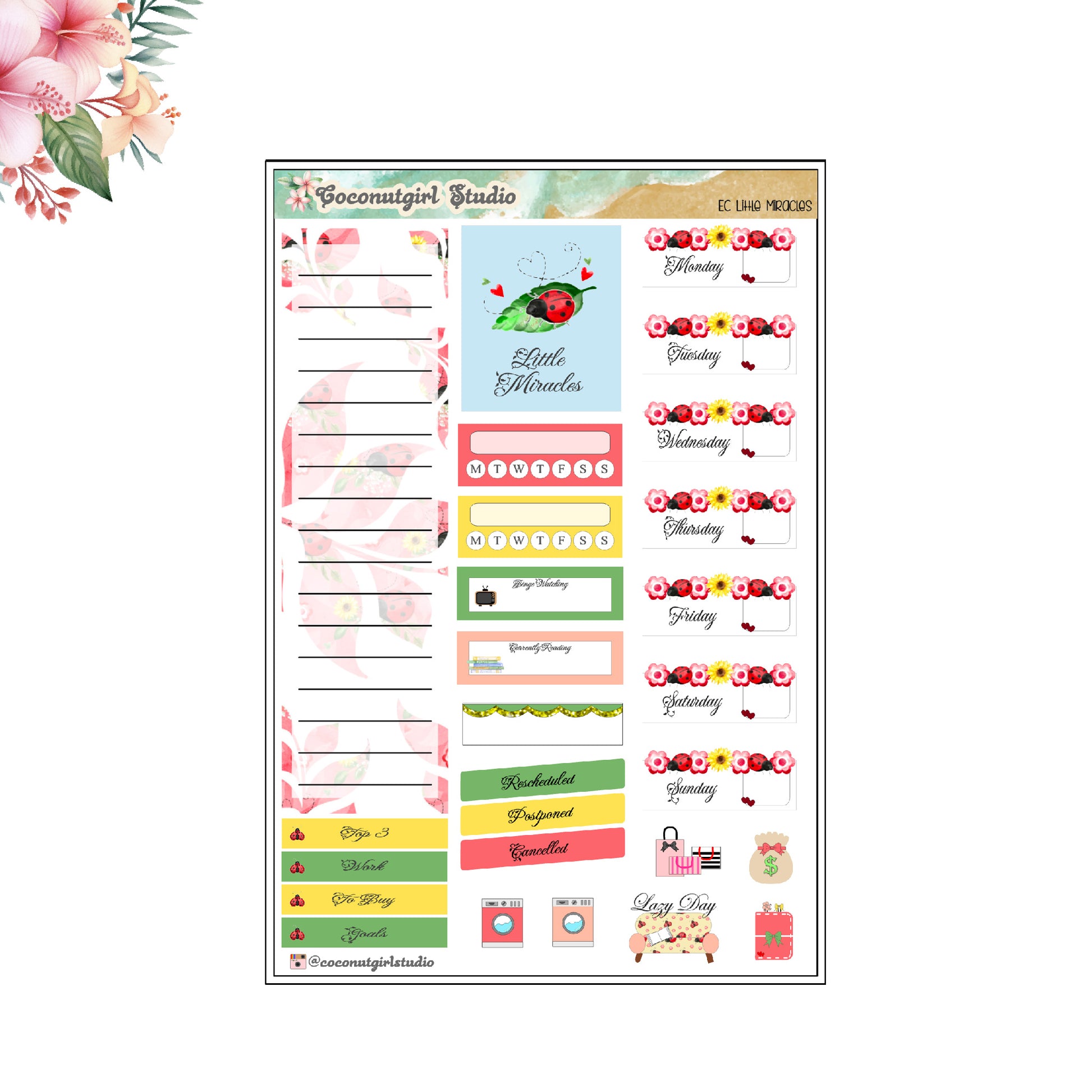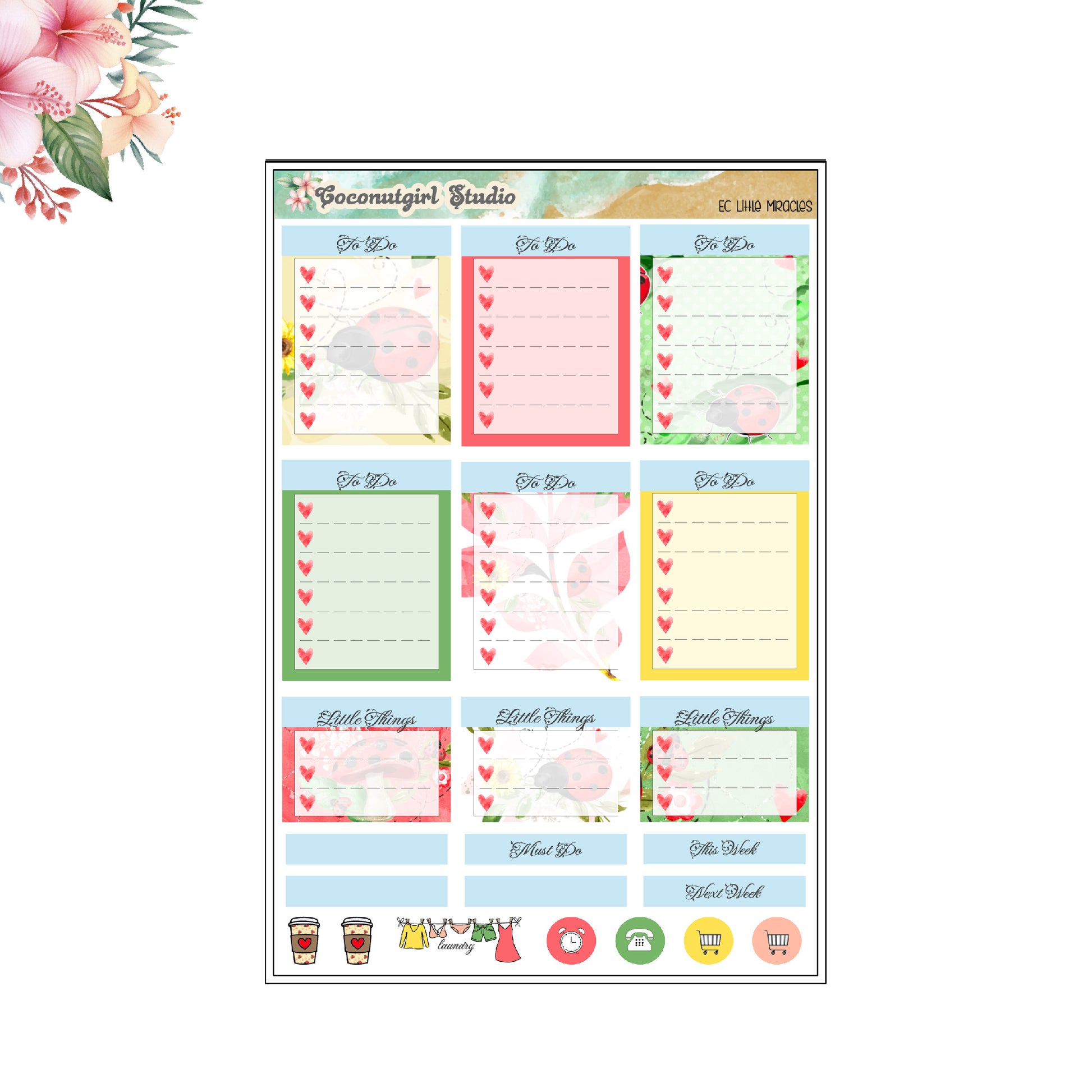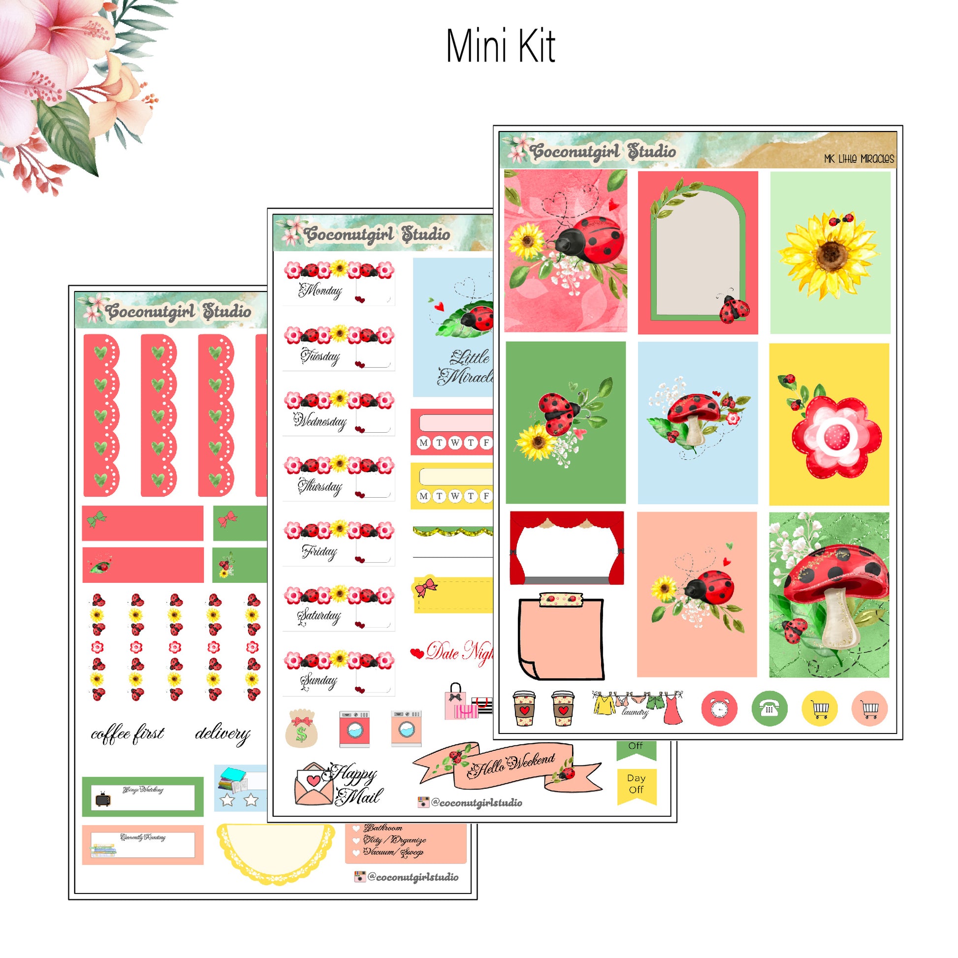 Prepare for a whimsical and organized week with our Little Miracles Weekly Kit. This bright and colorful planner sticker set will add a touch of cuteness and fun to your schedule. Stay on top of your tasks with a touch of spring and the charm of ladybugs.