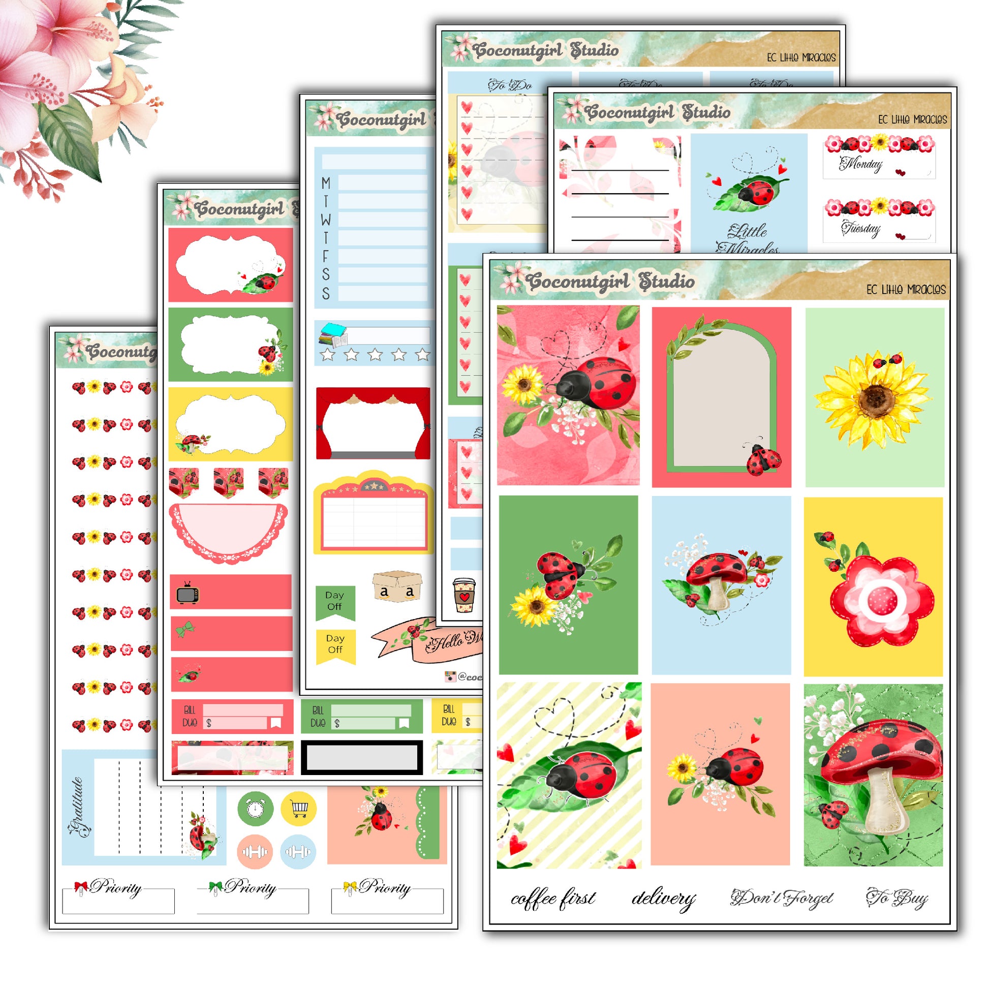 Ladybug weekly kit planner stickers.