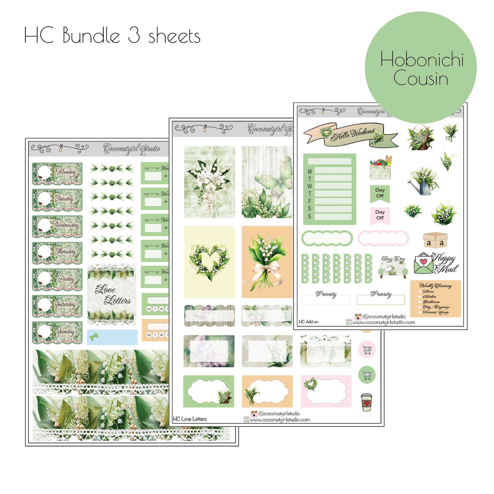 Delicate, timeless, and fresh – our Love Letters weekly kit brings soft elegance to your planner spreads. Featuring gentle green hues paired with white floral accents, this kit captures the purity and charm of these classic spring blossoms. Perfect for creating a serene and graceful layout, it’s ideal for marking your week with a touch of nature’s quiet beauty.