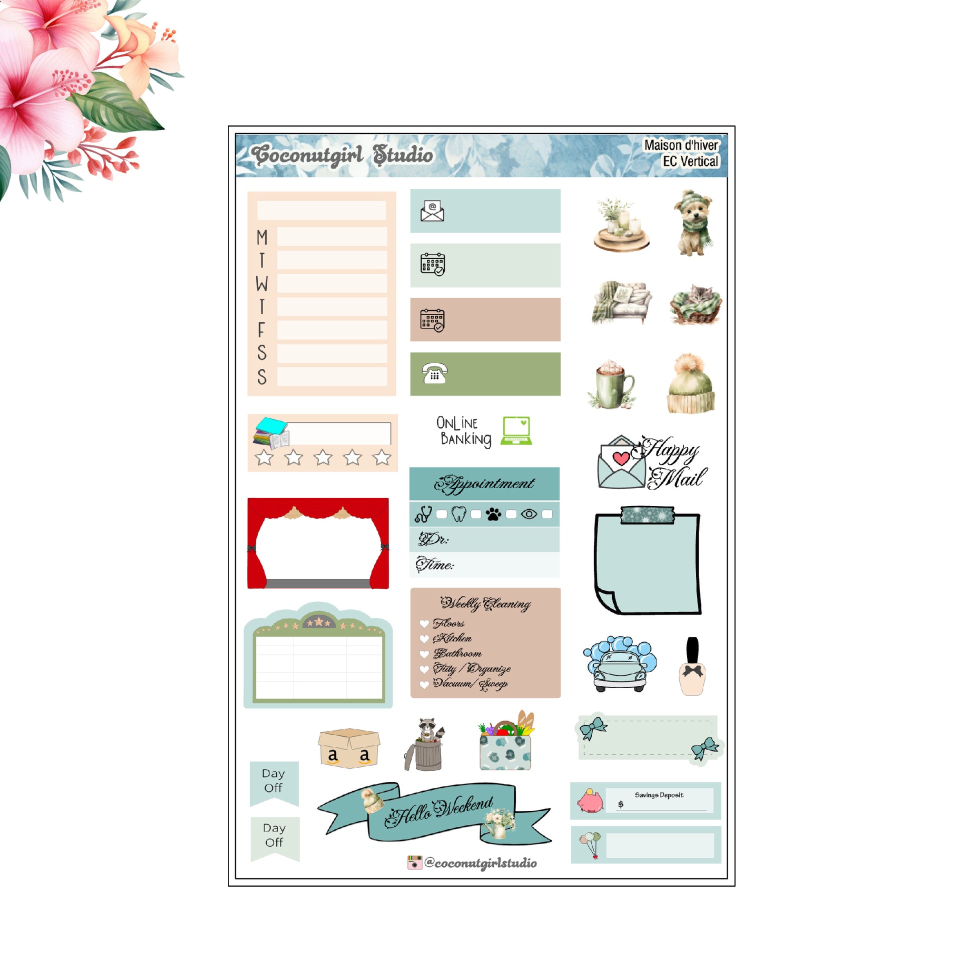 Maison d'hiver Weekly Kit Winter Cozy home plants planner stickers
