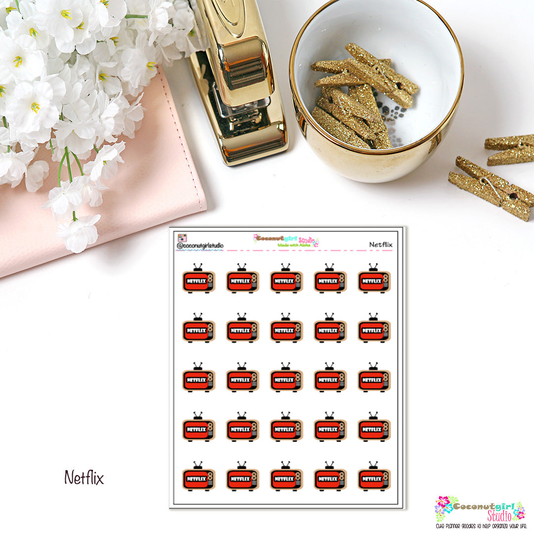 One sheet of Netflix stickers, binge-watching These kiss cut stickers are perfect for those days or nights!