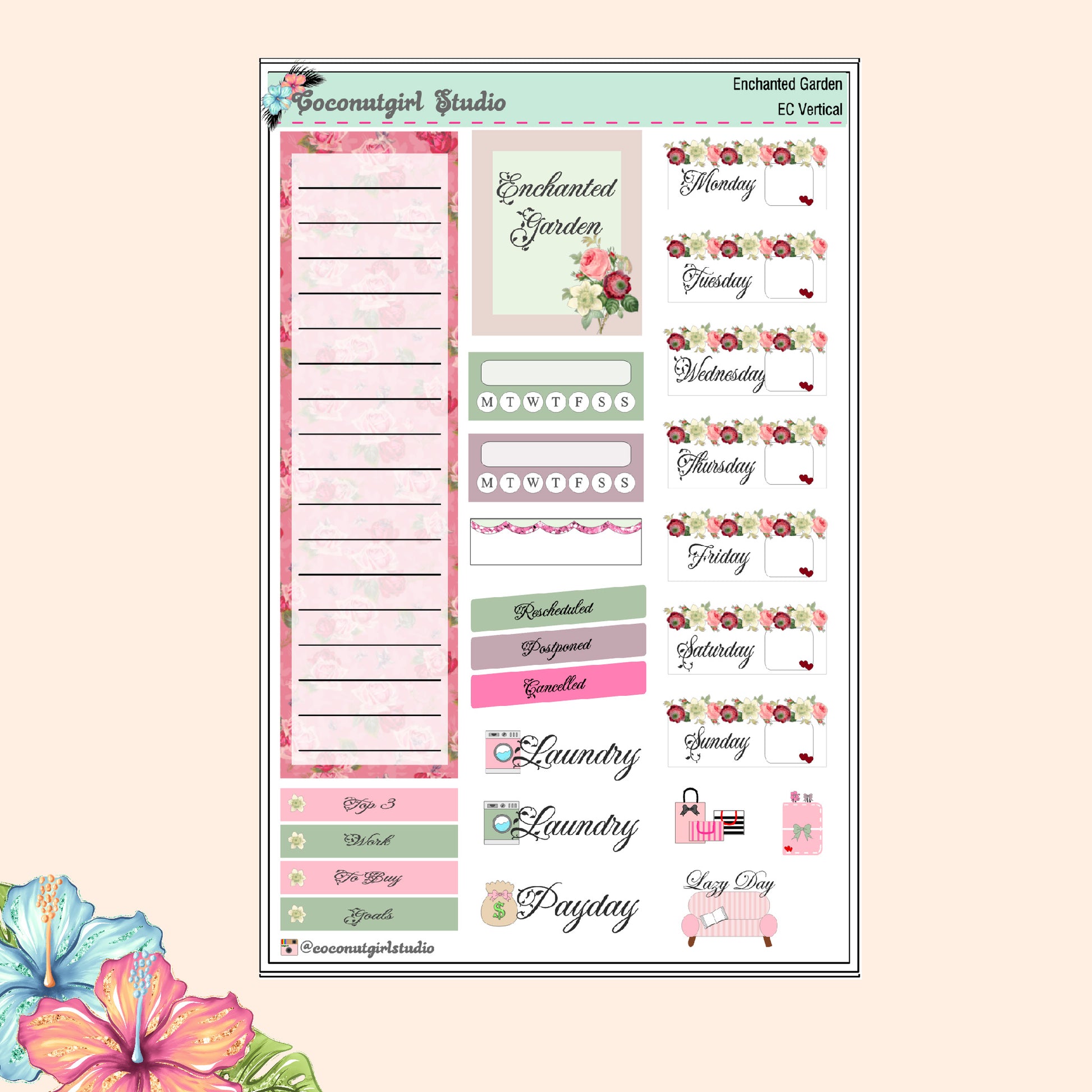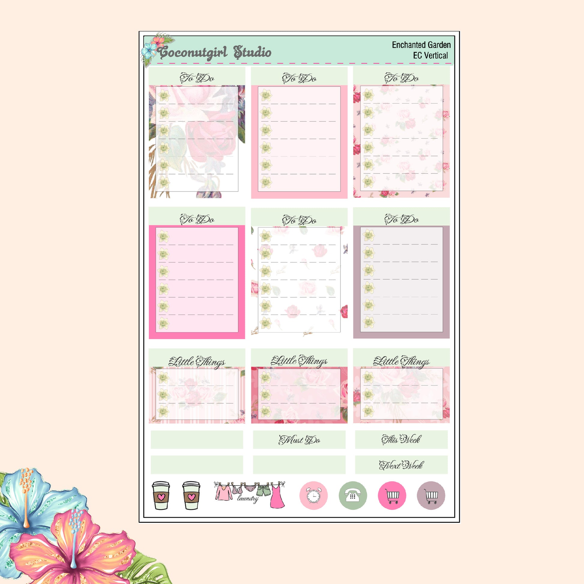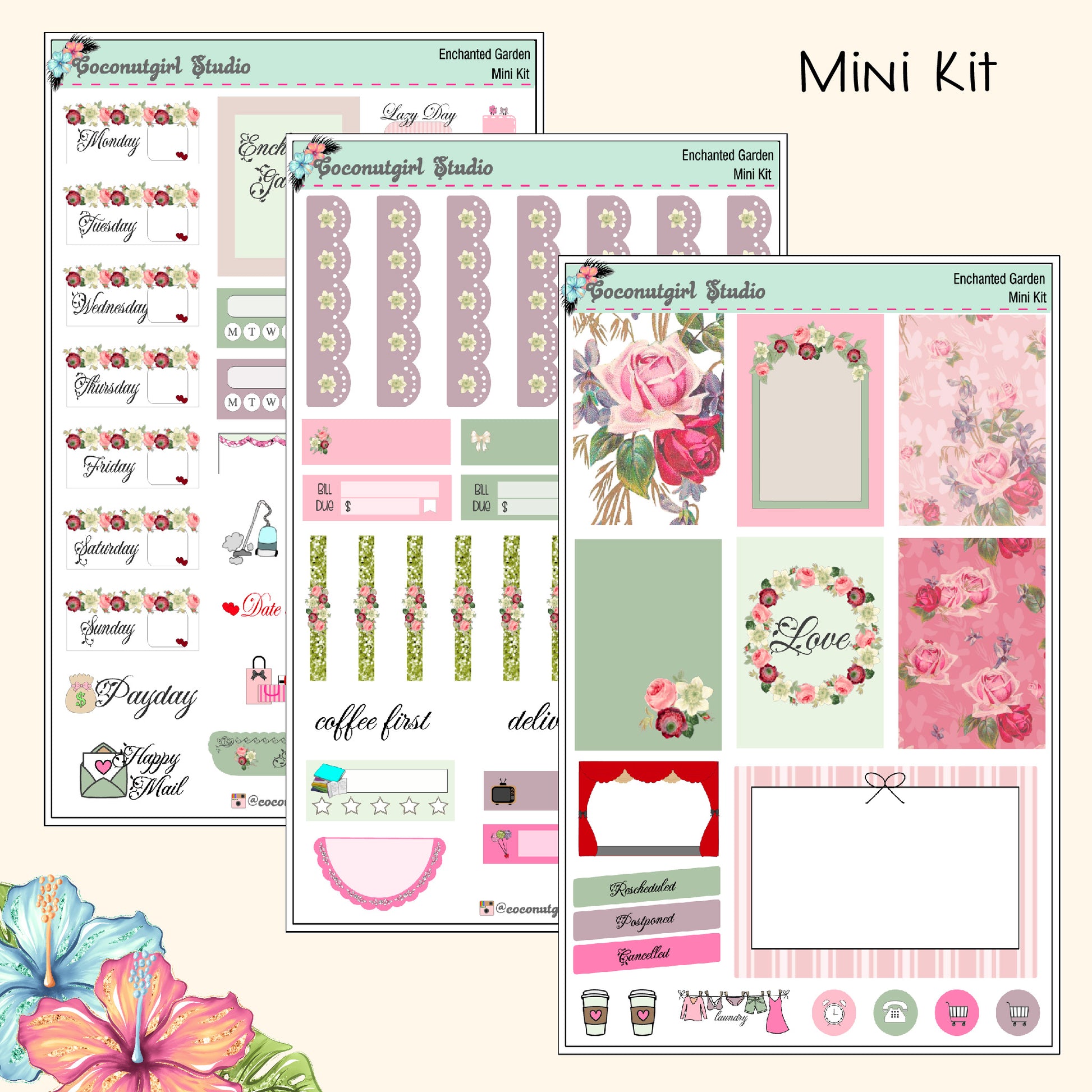A weekly kit for rose lovers. You can have a rose garden to decorate your planner.