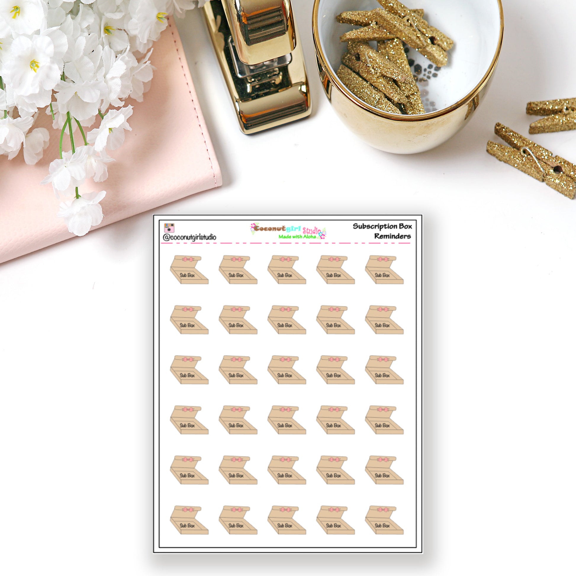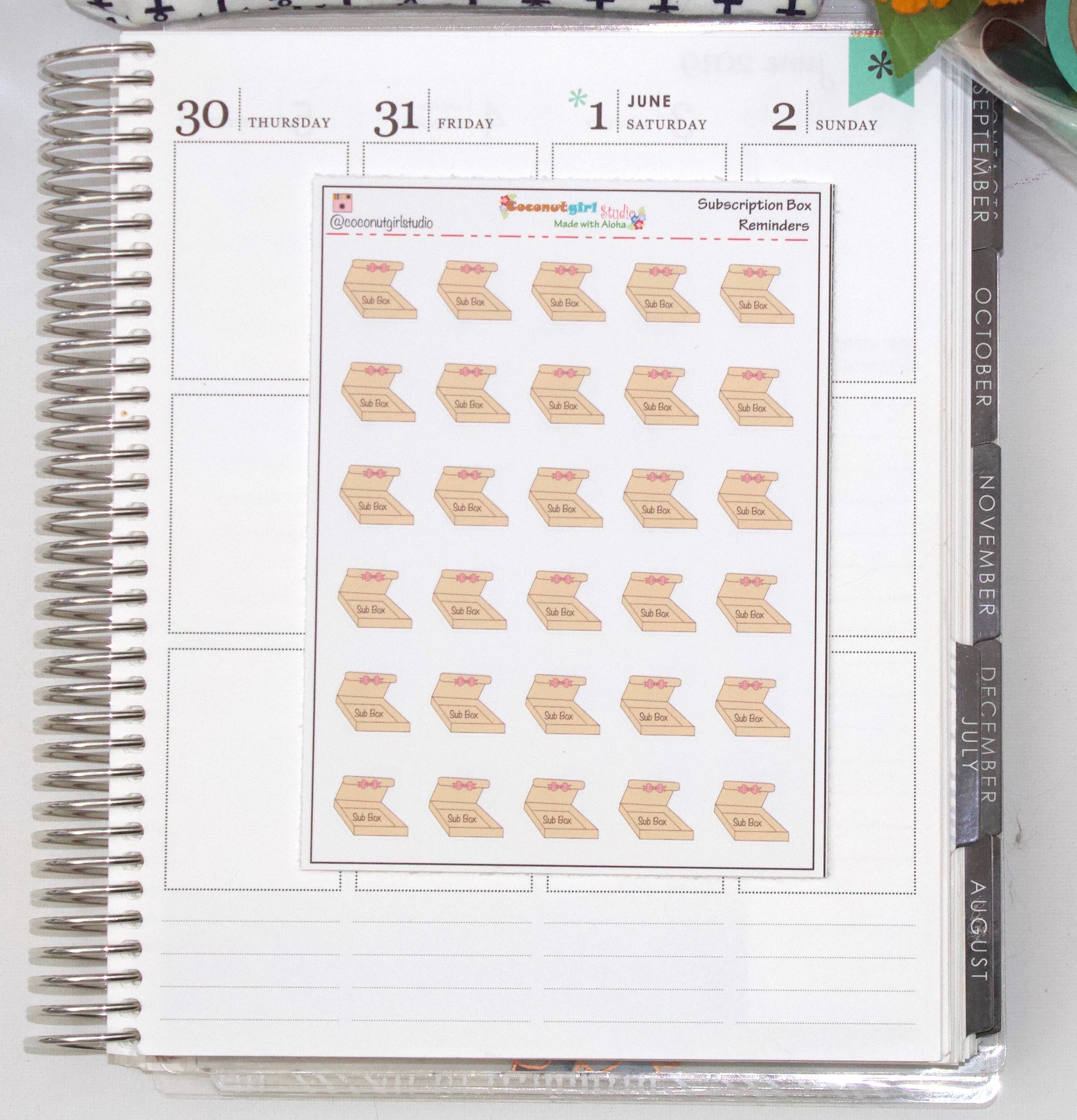 This kiss-cut sticker sheet is great for sub box reminders, whether their arrival or the payment due date!