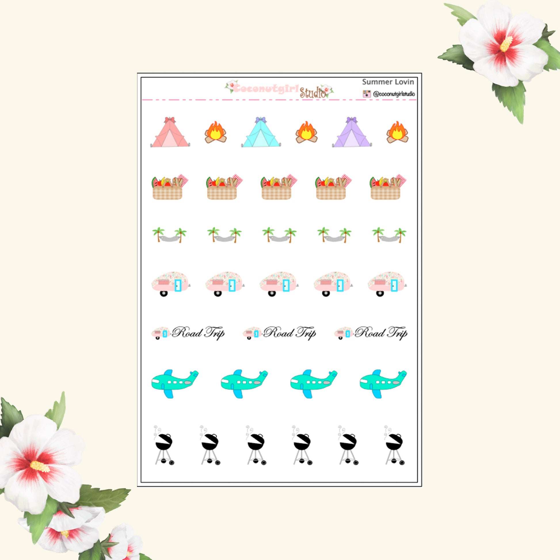 Kiss-cut stickers for all summer activities, grill outs, road trips, tropical vacations, or just lounging in the backyard!