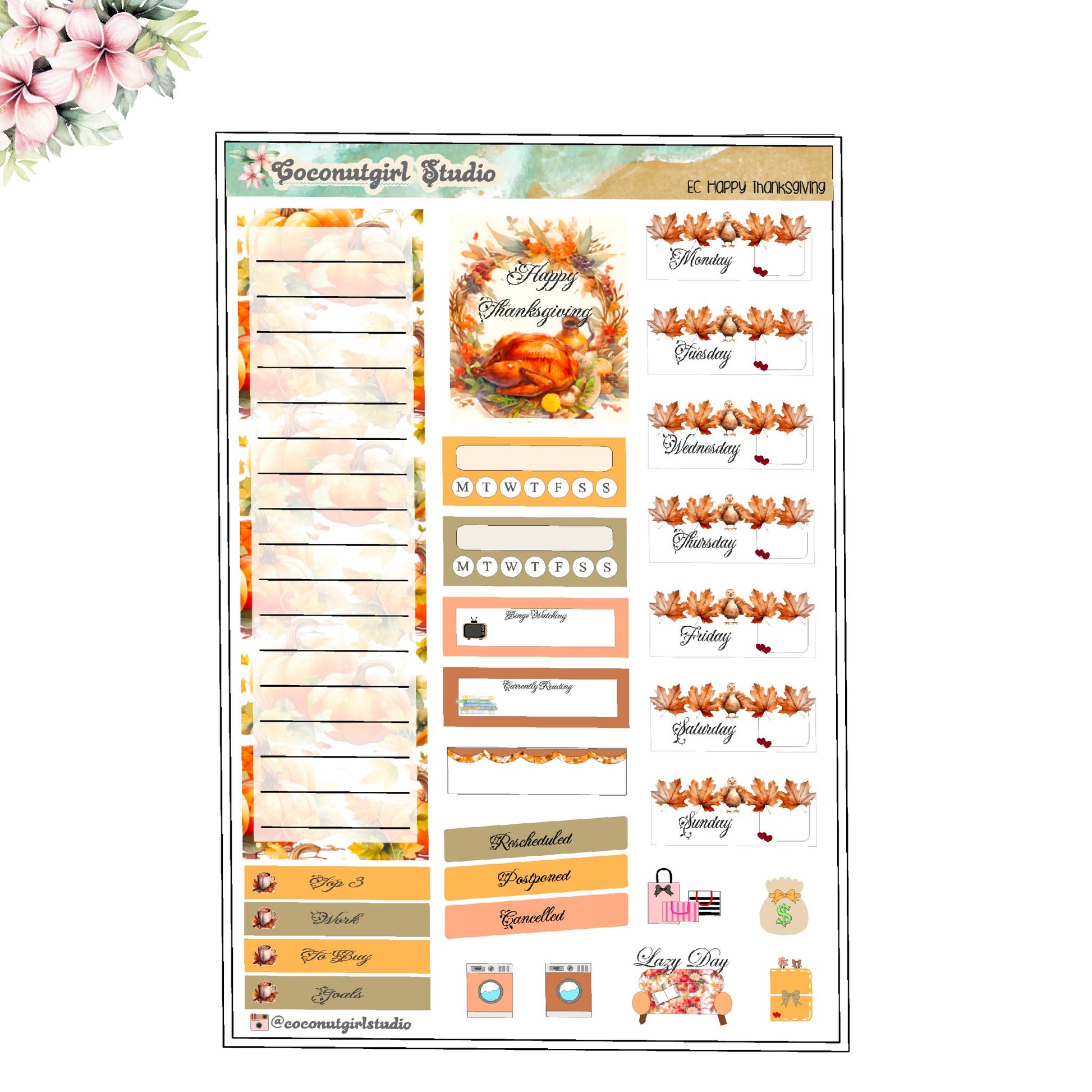 This is our Thanksgiving weekly kit printed on non-removable sticker paper