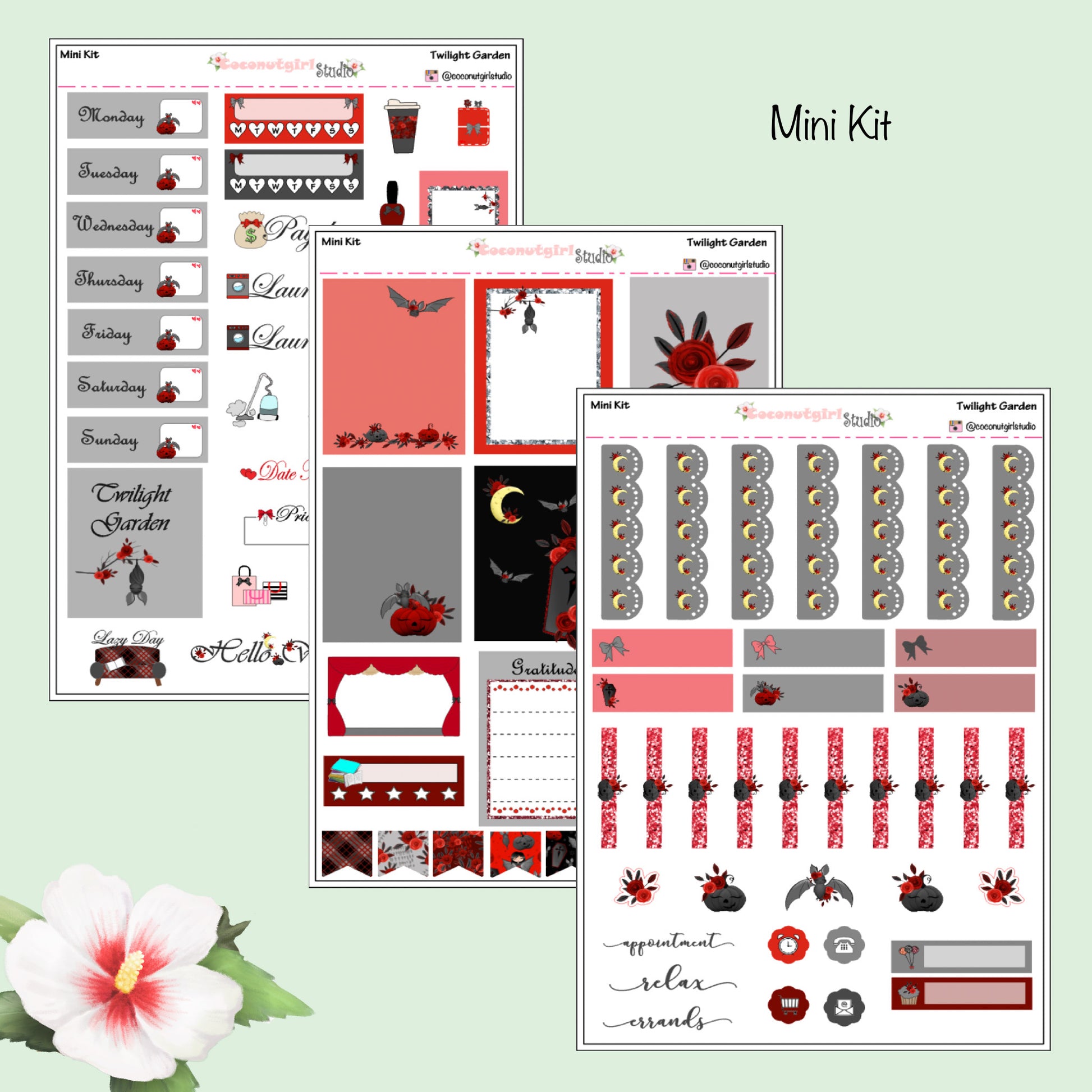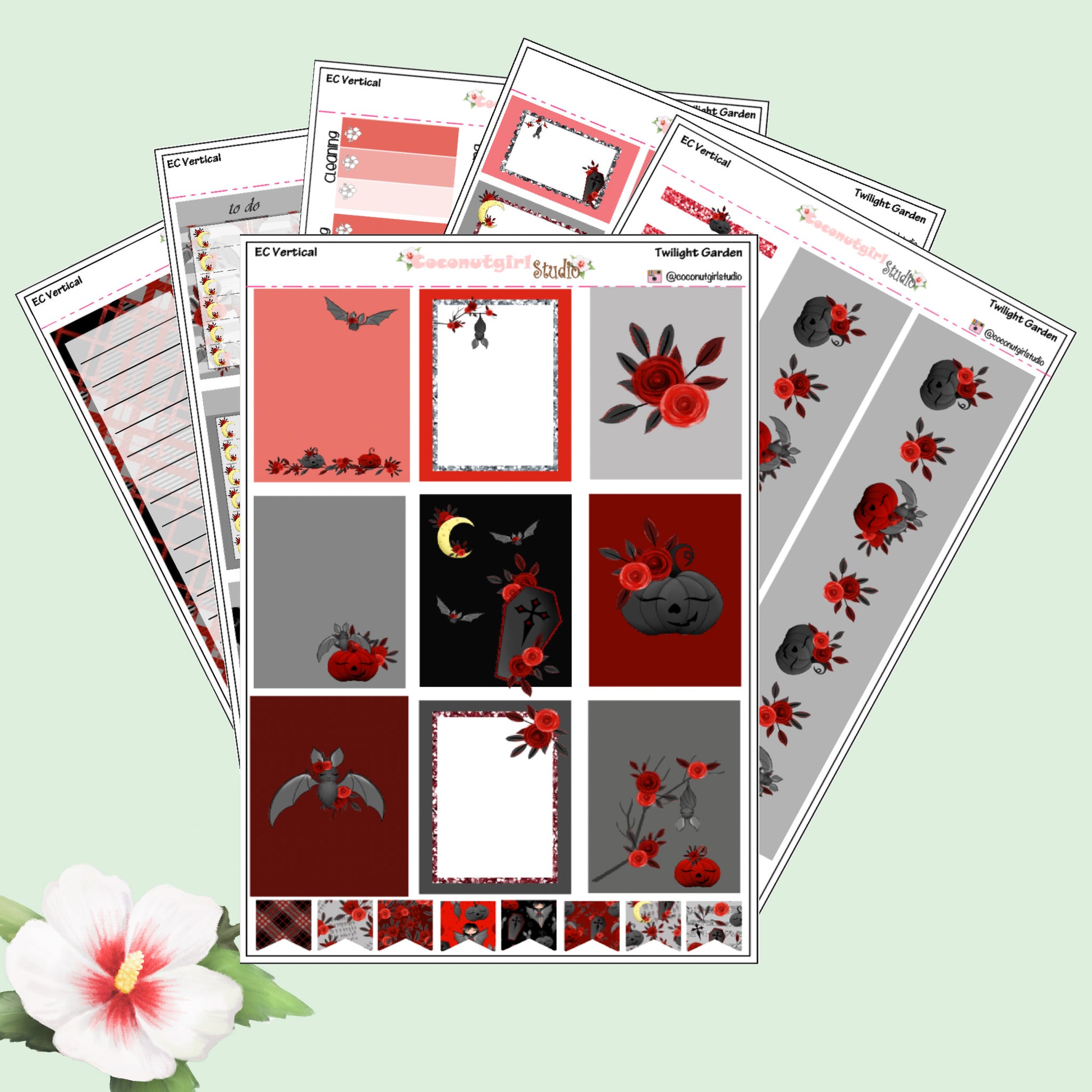 Decorate your planner with the cute bats hanging around a garden with this Halloween Kit!
