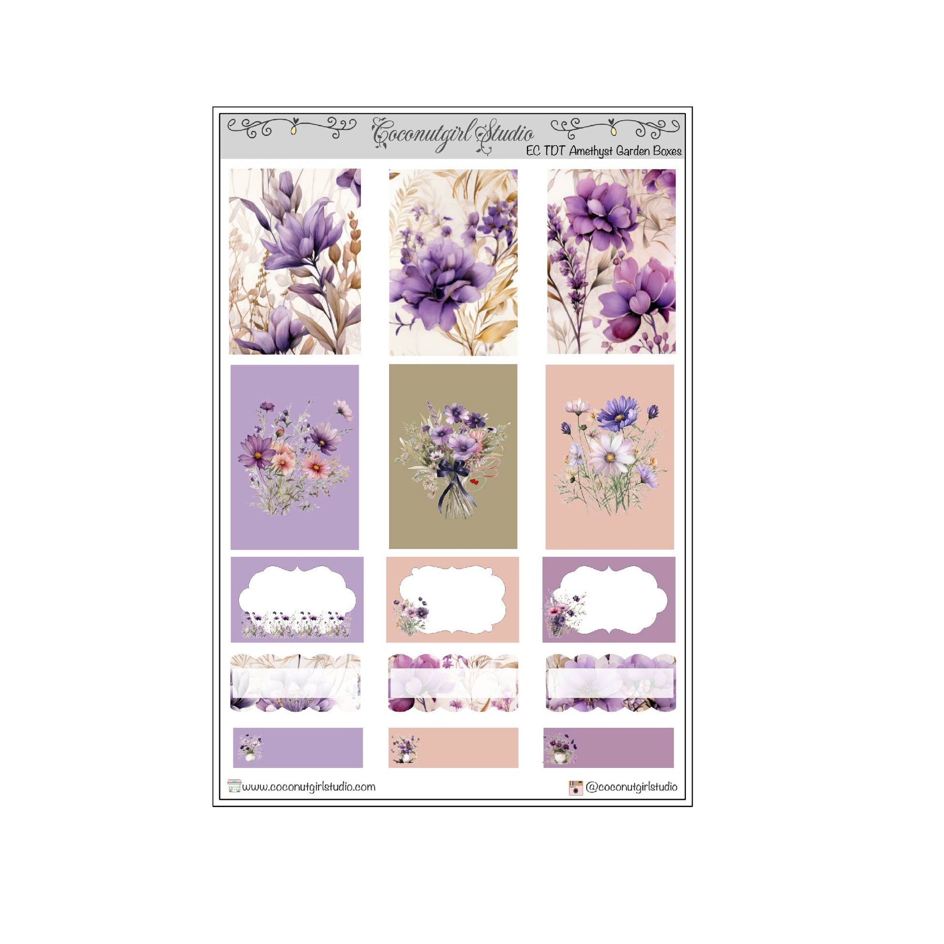 This is a sample from our Amethyst Garden weekly kit. You get 1 full sheet of this lovely floral-themed sampler!