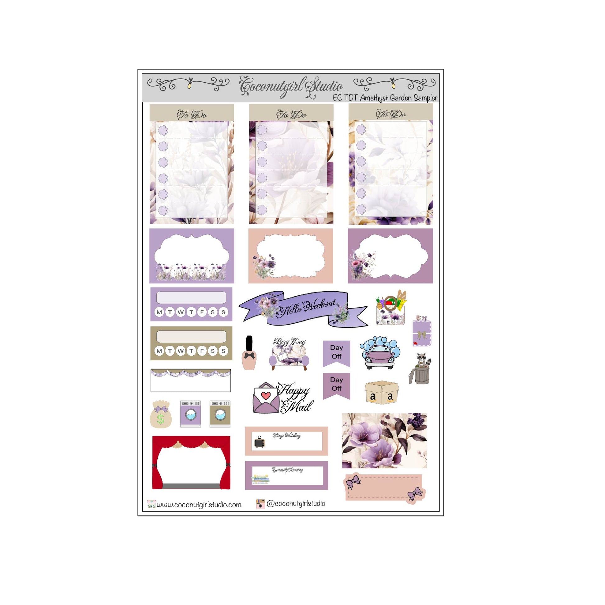 This is a sample from our Amethyst Garden weekly kit. You get 1 full sheet of this beautiful pink and purple floral sampler!