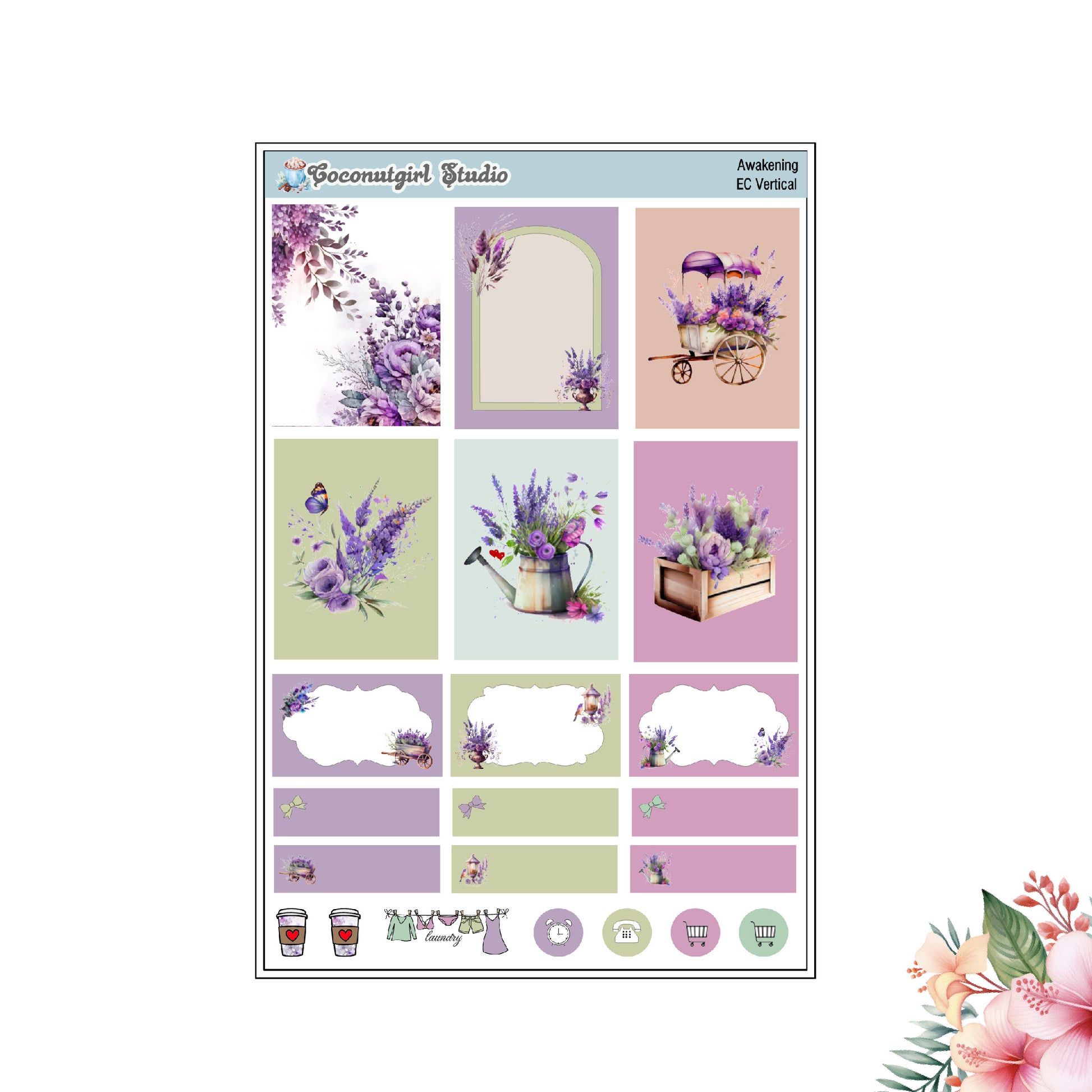 This is a sample from our Awakening weekly kit. You get 1 full sheet of this purple floral sampler!