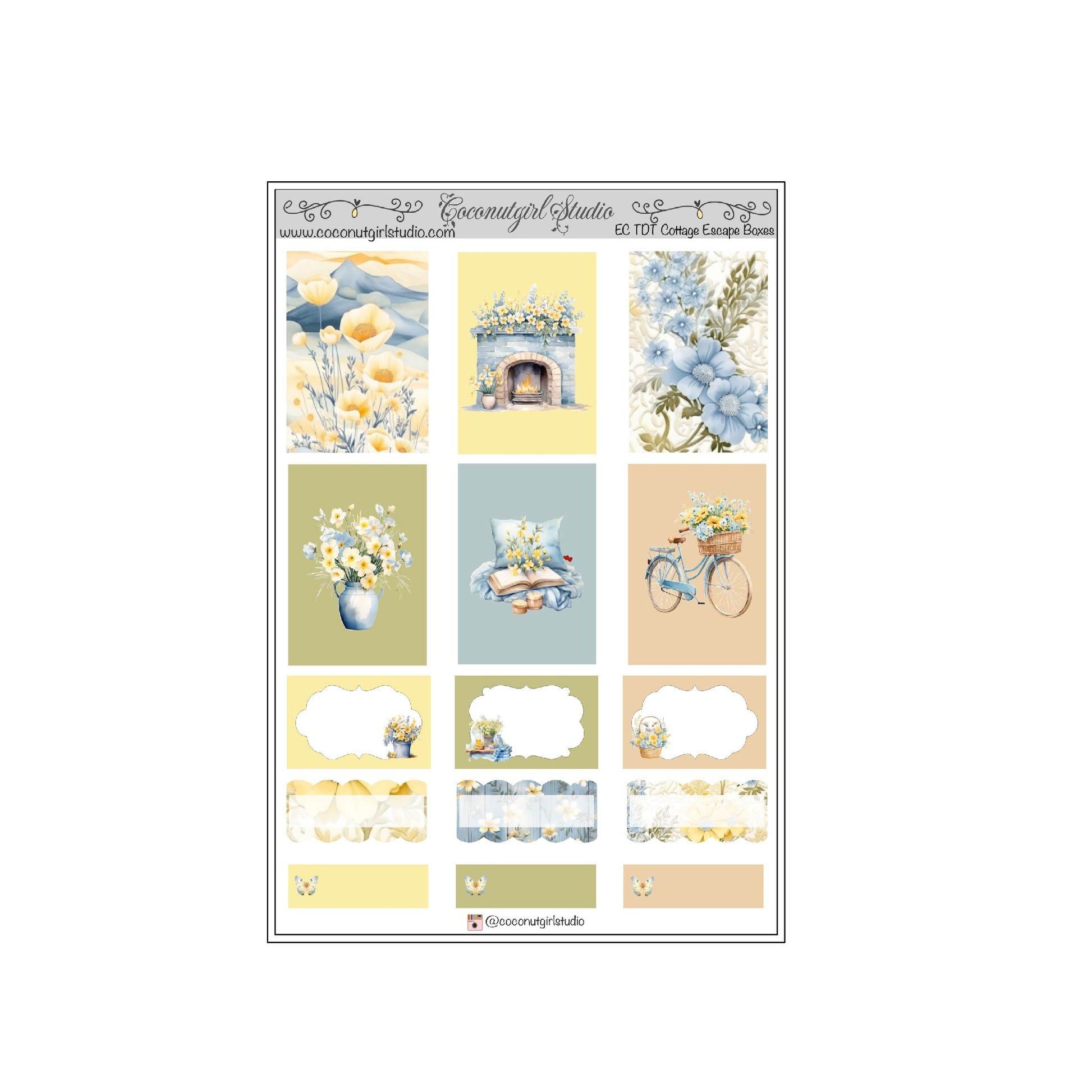 This is a sample from our Cottage Escape weekly kit. You get 1 full sheet of this pastel yellow floral lakeside sampler!