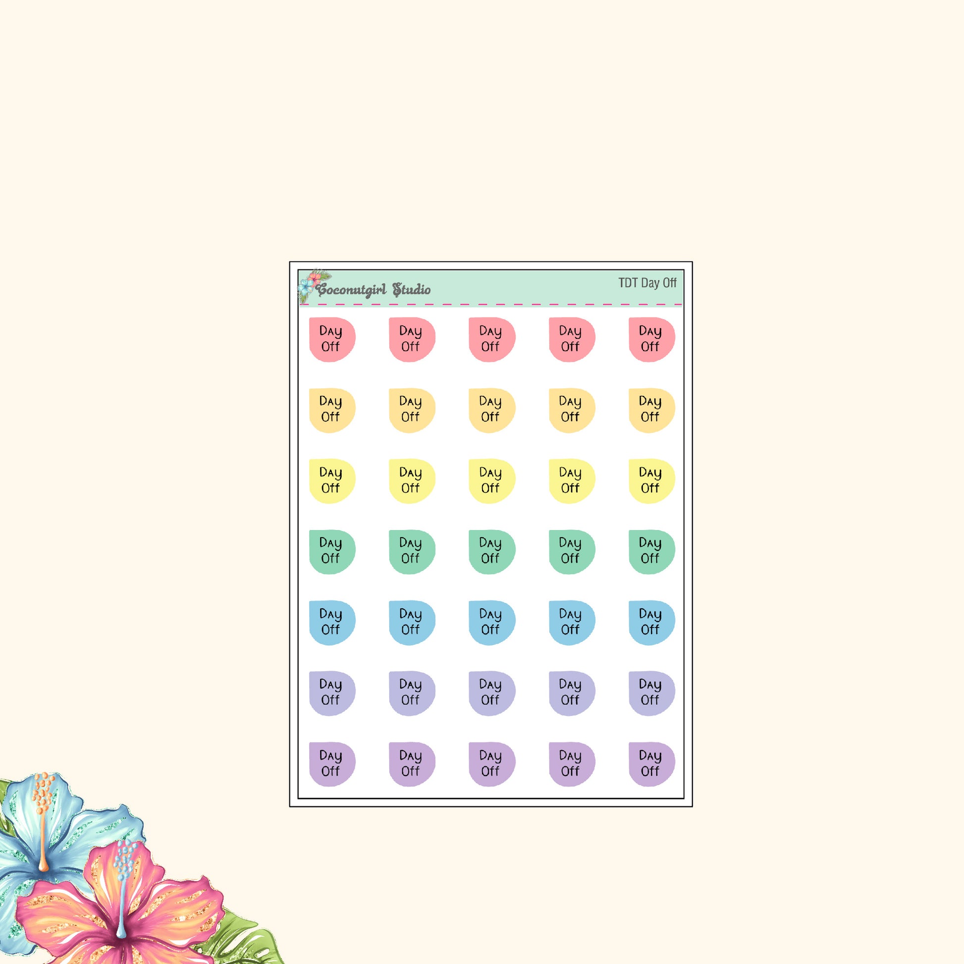 This is a sample of our Day Off round corner stickers. You get a half sheet of a rainbow of colors in stickers!