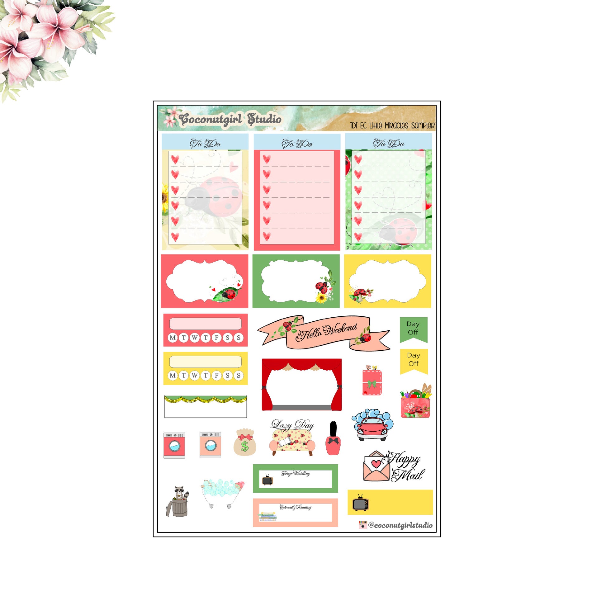 This is a sample from our Little Miracles weekly kit. You get 1 full sheet of this happpy cute ladybug filled sampler!