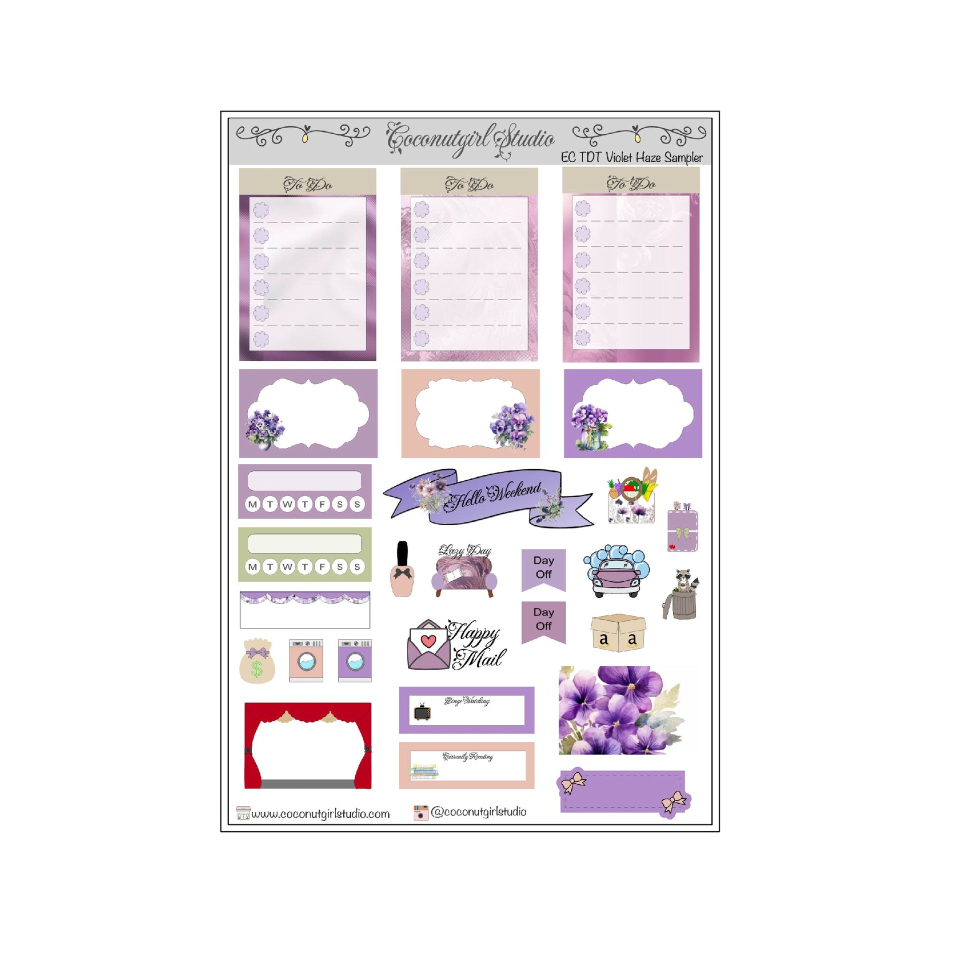 This is a sample from our Violet Haze weekly kit. You get 1 full sheet of this beautiful purple and pink floral sampler!